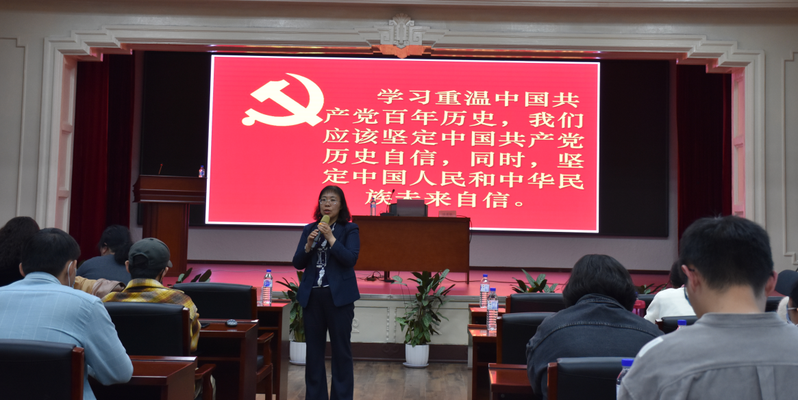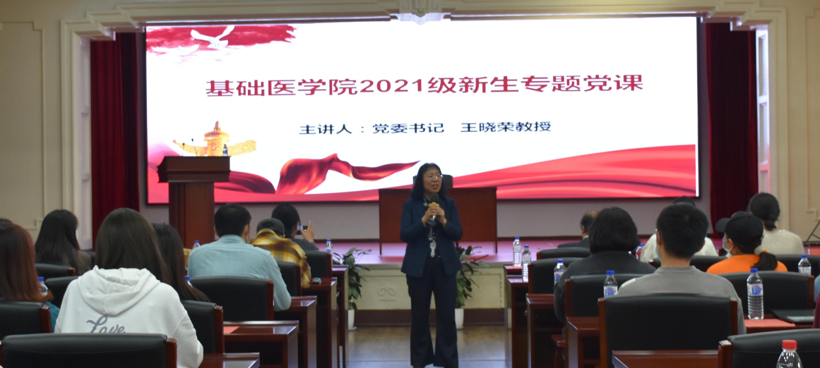 2021年10月11日下午,明胜m88官网党委书记王晓荣教授在公司报告厅为2021级全体新生讲党课暨专题思政课。