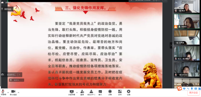 为进一步贯彻落实习近平总书记关于疫情防控工作重要指示精神,持续发挥基层党组织战斗堡垒作用和共产党员先锋模范作用,坚持疫情防控不松懈。明胜m88官网前卫北区第四临时党支部开展了学习m88官方网站党委下发的《致全校各级党组织和广大党员的倡议书》专题党日活动,140余名党员参加了本次线上党日活动。