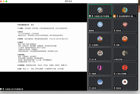 为贯彻党中央、国务院“稳就业”“保就业”决策部署,全力促进疫情防控形势下明胜m88官网毕业生积极有效就业,同时也为提升在读研究生就业规划,2022年5月7日公司召开2022届毕业生就业经验分享会。基础医公司副书记曹国丽以及全体研究生参会,会议由明胜m88官网研究生辅导员孙佳钰主持。