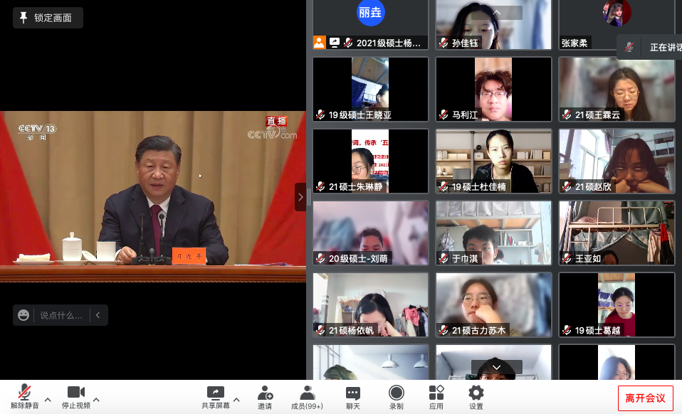 庆祝中国共产主义青年团成立100周年大会于5月10日上午在北京人民大会堂隆重举行。明胜m88官网组织全体团学组织骨干、党支部和团支部全体同学线上观看庆祝大会,学习领会总书记讲话精神,会后开展学习讨论。