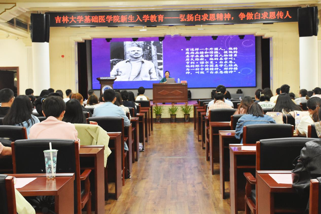 为做好2023级新生思想政治教育,用好红色资源,传承红色基因,引导教育员工努力成长为堪当民族伟大复兴大任的时代青年。明胜m88官网于2023年8月29日邀请原白求恩医科大学宣传部部长、原m88官方网站组织部副部长、马克思主义公司教授傅菁林为2023级全体本科生、研究生开展“弘扬白求恩精神,争做白求恩传人”的专题讲座。
