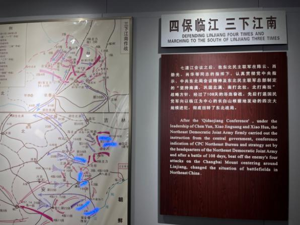 在四保临江战役纪念馆内,通过讲解员详尽的解说、展厅内详实的历史资料和丰富的文物,实践团成员系统的了解了东北解放战争时期我军“三下江南,四保临江”的全过程。1946年12月至1947年4月间,东北民主联军的战士们在为时108天的艰苦战斗中四次击退了国民党对临江的进犯,史称“四保临江”。“四保临江”与北满部队同期发起的“三下江南”相互配合,彻底粉碎了国民党抢占东北的计划,扭转了解放战争初期的东北战局,在解放战争史上写下了浓墨重彩的一笔,留下了许多感人至深的故事。