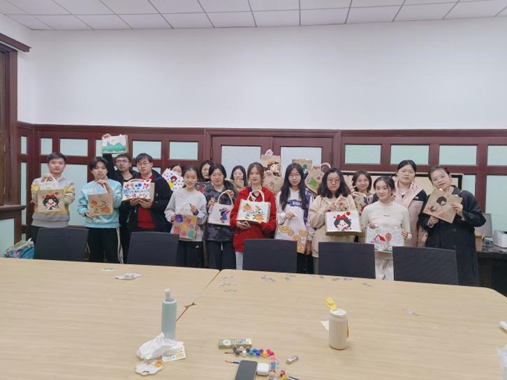 首先,主持人赵鹤向同学们宣传了现场活动。随后由主持人朴炫旭介绍本次活动的意义和制作方法,在工作人员为参与活动的同学分发帆布包和颜料后,活动正式开始。绘画时,同学们放松身心,认真绘画,相互帮助,彼此提出建议并真诚赞美,气氛其乐融融,充分发挥想象力,用多彩的颜料在帆布包上描绘自己青春的色彩。一小时后,同学们都完成了自己的帆布包绘画作品,全体同学与各自的绘画作品合影留念。最后,主持人向大家发放提前准备好的刮刮乐、笔以及卡片,鼓励同学们把自己想说的话写在卡片上,作为礼物送给本次活动中的朋友,并且可以抽取刮刮乐来赢得随机的小礼物。活动在一片轻松快乐的氛围下圆满结束。