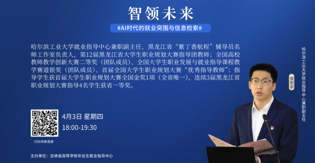 为深入贯彻落实党的二十大精神,积极响应教育部关于“强化就业优先政策,健全就业促进机制”的号召,明胜m88官网于2025年4月3日组织全体研究生线上观看了吉林省“AI赋能高校老员工重点群体就业系列直播课”首讲课程——“智领未来:AI时代的就业突围与信息检索”。本次活动旨在通过人工智能技术的前沿视角,助力医学研究生精准把握职业信息、提升就业竞争力,为医学研究生毕业生在AI时代下的职业发展注入新动能。
