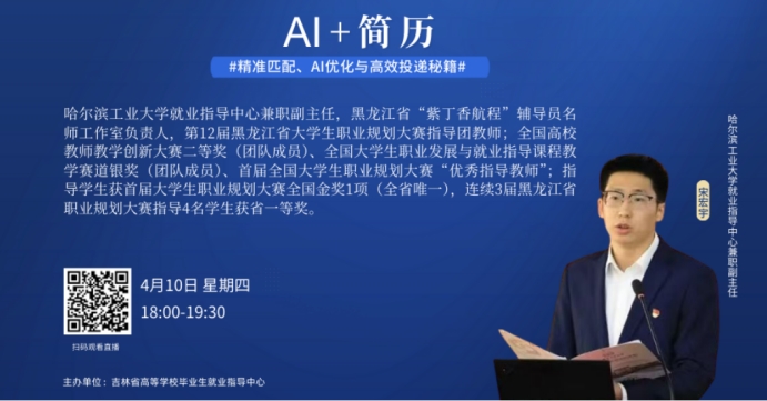 为深入贯彻落实党的二十大报告中“强化就业优先政策,健全就业促进机制”的决策部署,积极响应教育部关于“推动就业服务数字化转型,提升高校毕业生就业质量”的号召,明胜m88官网于2025年4月10日组织全体研究生线上观看了吉林省“AI赋能高校老员工重点群体就业系列直播课”首讲课程——“AI+简历:精准匹配、AI优化与高效投递秘籍”。本次活动聚焦人工智能技术在求职简历优化、岗位精准匹配及投递策略中的创新应用,旨在通过前沿技术赋能医学研究生职业发展,助力其在AI时代实现高质量就业。