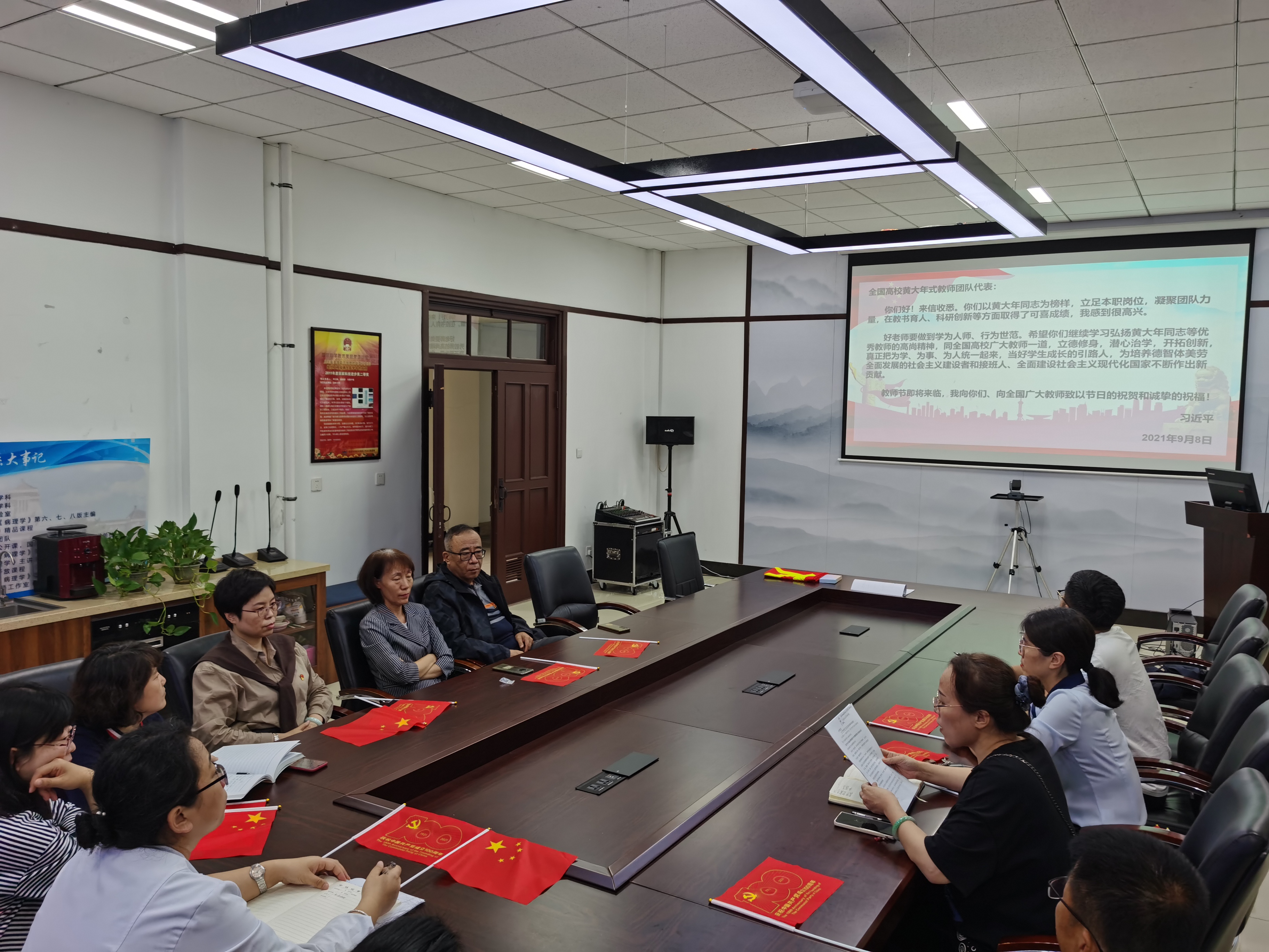 会上,支部书记带领大家学习了《习近平总书记给全国高校黄大年式教师团队代表的回信》。习近平总书记在回信中对广大教师提出了殷切期望,指出“好老师要做到学为人师、行为世范”“要立德修身,潜心治学,开拓创新,真正把为学、为事、为人统一起来,当好员工成长的引路人”。支部党员教师们深受鼓舞,纷纷表示要大力弘扬黄大年精神,以大年老师为榜样,立足本职岗位,不忘初心,牢记教书育人的使命,以更加饱满的精神状态和优异的成绩回报习近平总书记的深情嘱托和殷切期望。