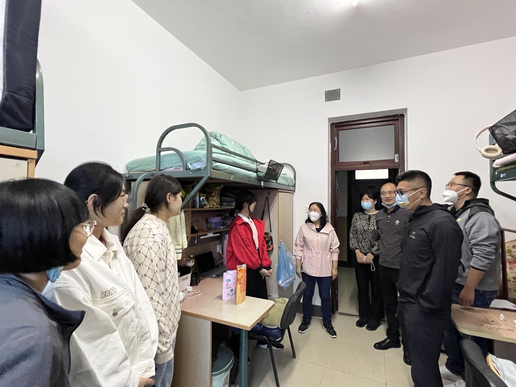 为深入了解明胜m88官网2022级新生情况,帮助同学尽快适应新环境,2022年8月27日,明胜m88官网经理王放、党委书记王晓荣、副经理陈龙、员工工作办公室主任李东洋、生物医学科学系主任张灵和团委负责人孙佳钰对新生寝室进行了走访,送上亲切关怀。