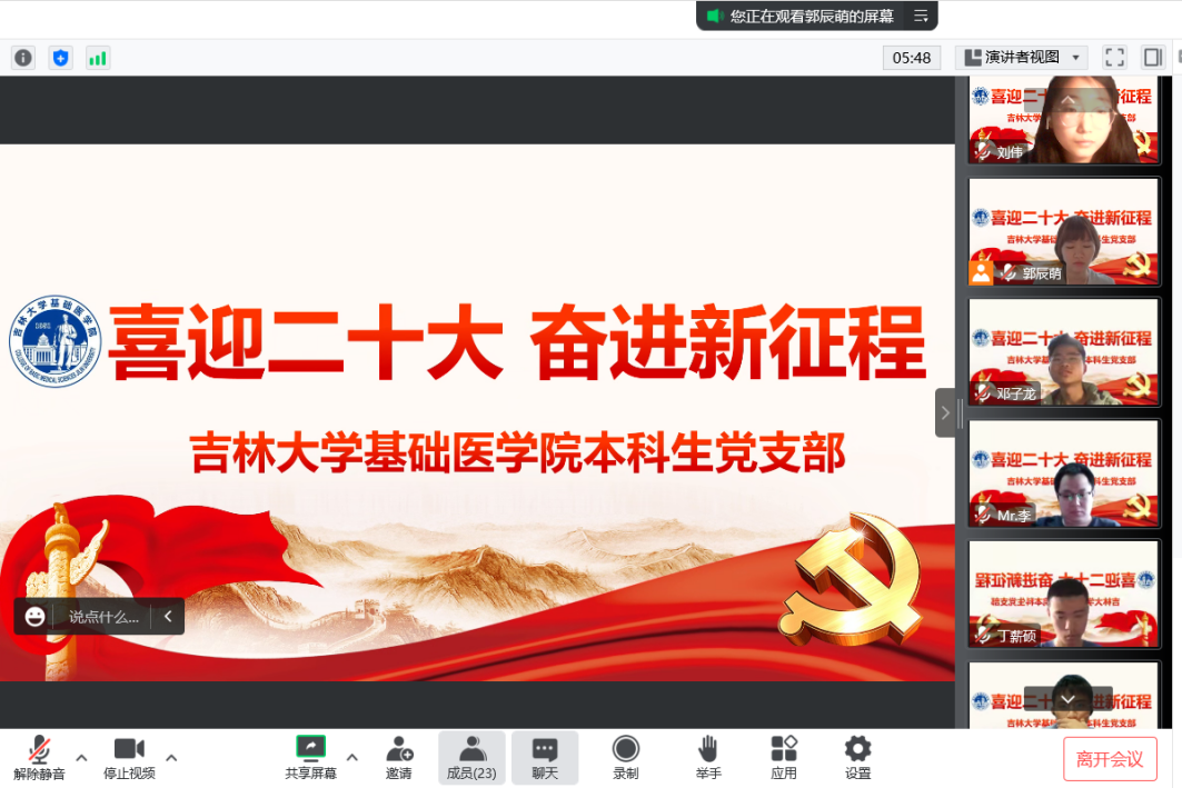 奋进新时代,争做追梦人。二十大报告中描绘了国家发展的宏伟蓝图,使同学们更加全面地了解党和国家事业取得的历史性成就,也更加深刻地认识到新时代老员工要坚定不移跟党走,在学业上不断勇攀高峰,在工作中全心全意服务社会的责任和使命。听到总书记在报告中对科研工作的期许,同学们倍感振奋,更加坚定自己的选择和追求的目标。“我愿将学术专长同国家发展和社会需要结合起来,将个人对教育理想的追求、对科学研究的探索同中华民族伟大复兴的中国梦相结合,与国家同行。”