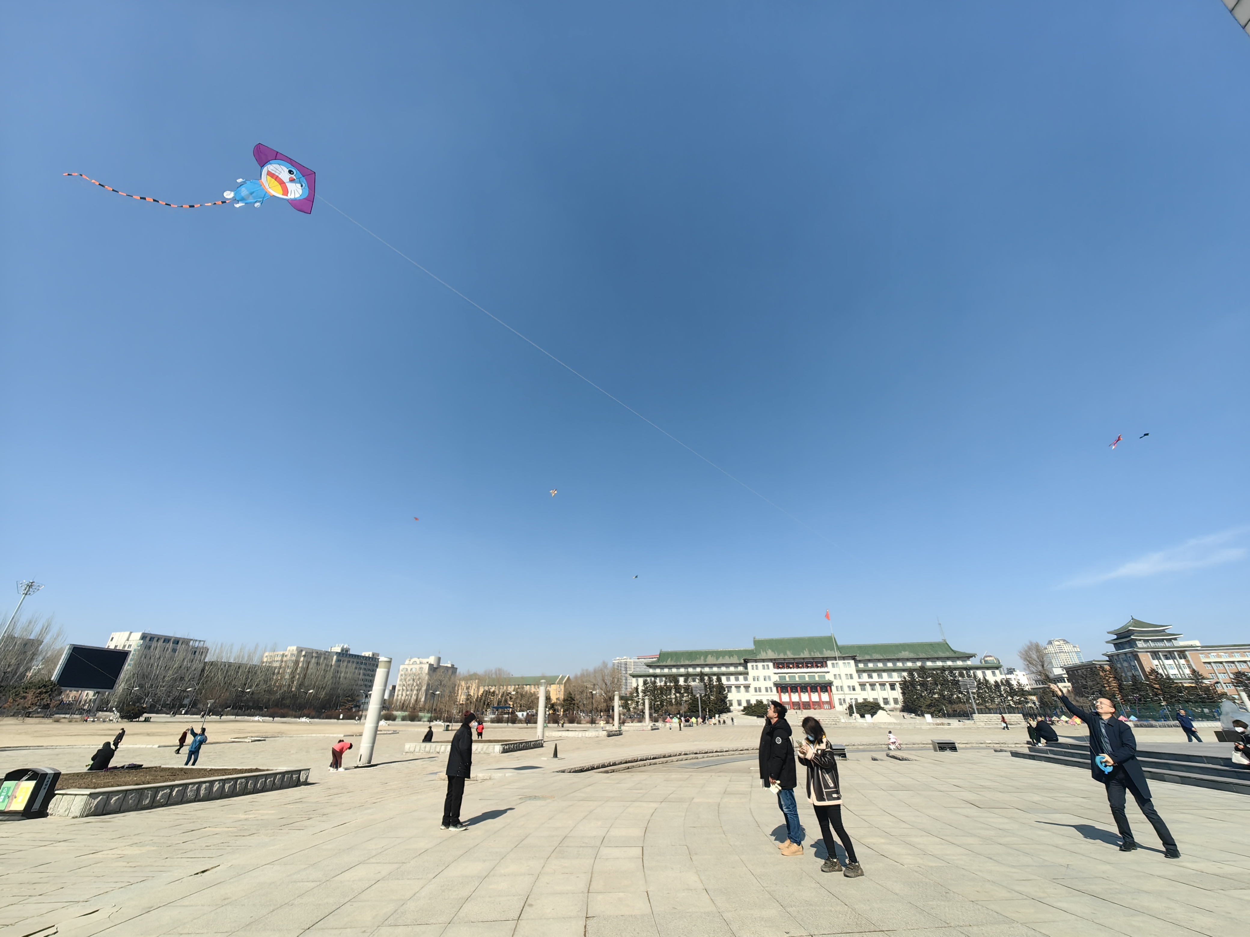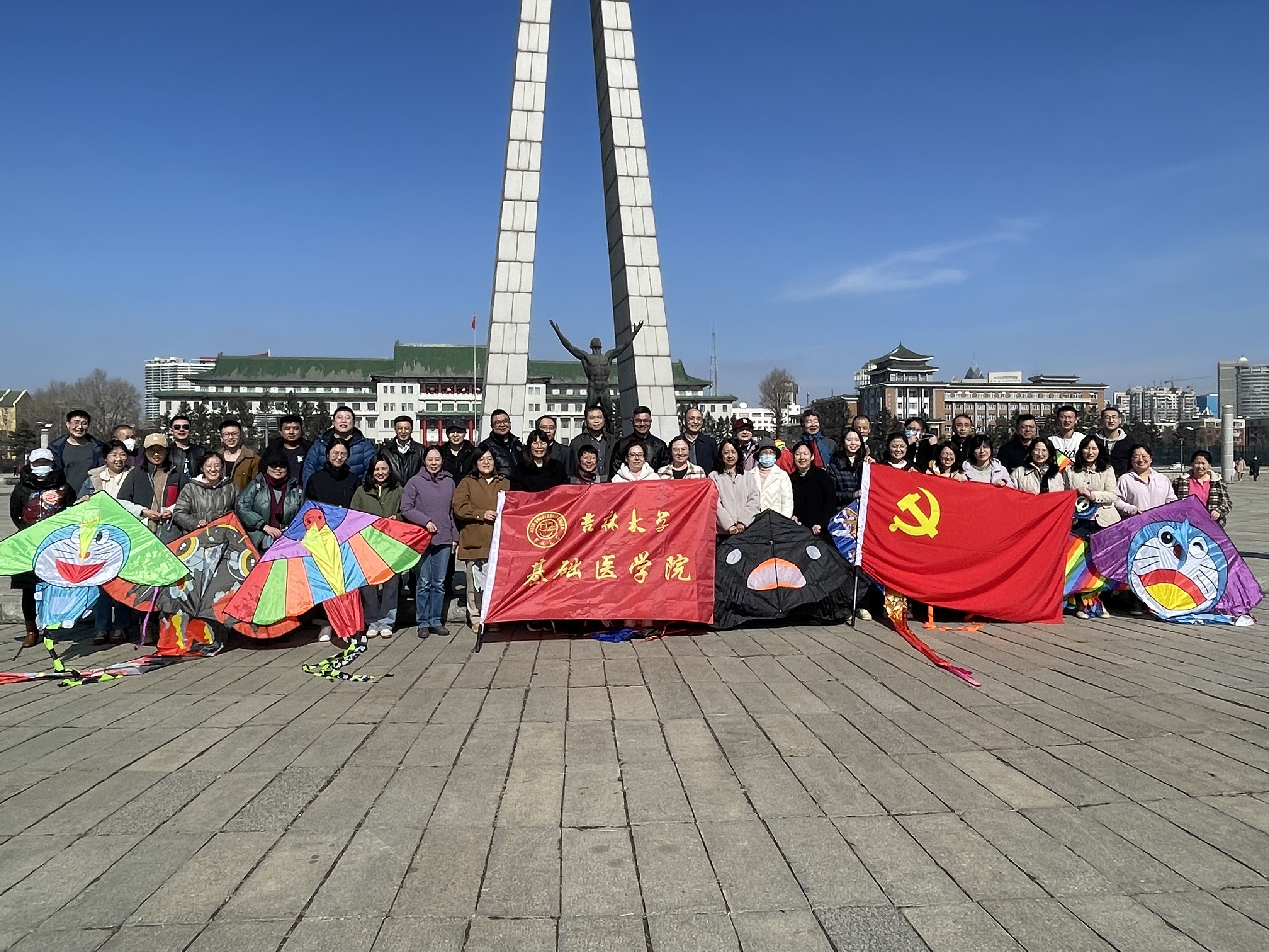 在春意盎然的文化广场上,公司的女教职工们褪去了工作时的严谨形象,脸上洋溢着热情、活力与朝气,各式各样、色彩纷飞的风筝满载着教职工们的希望与快乐在天空中自由翱翔。