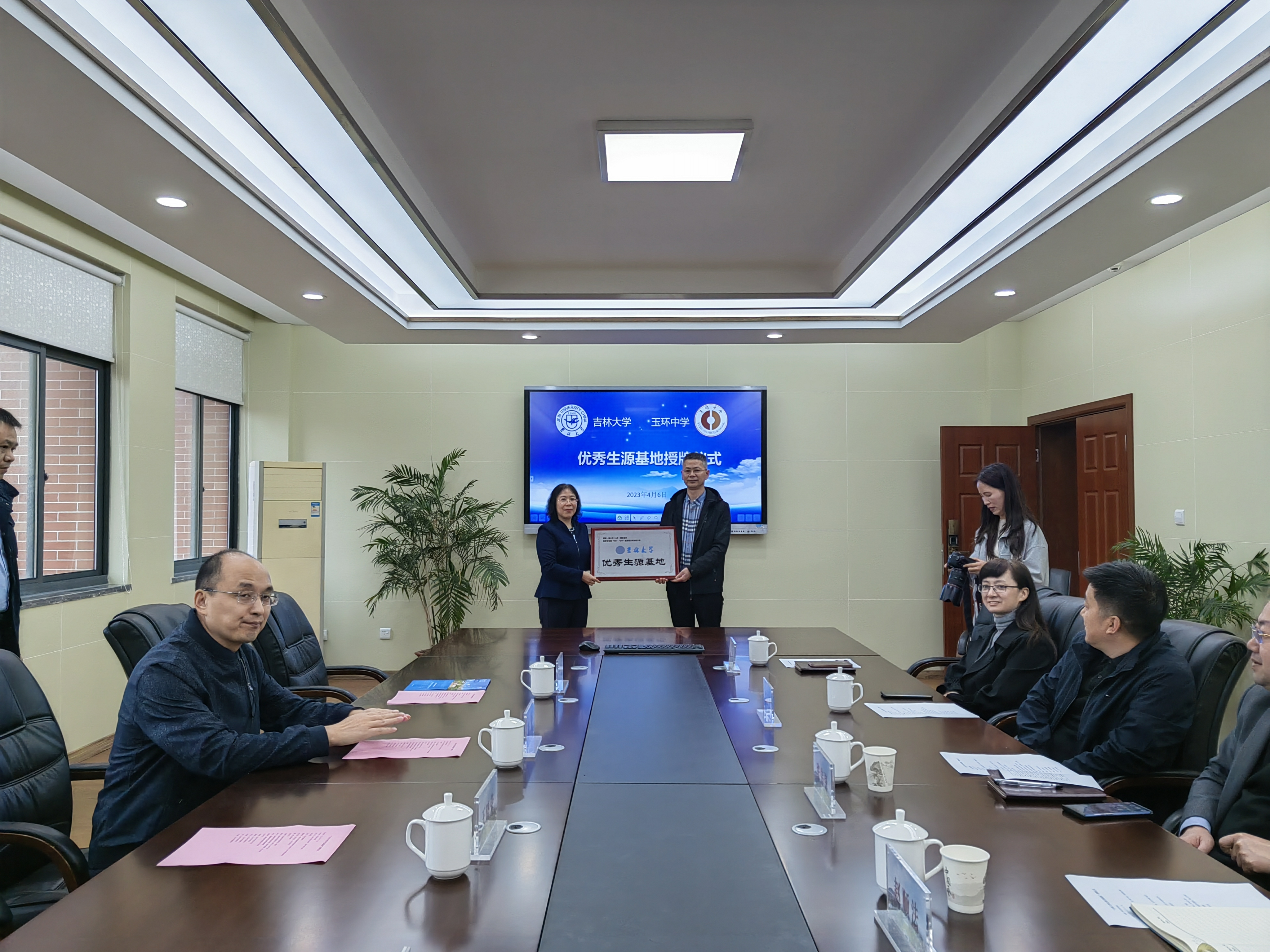 4月6日14:30时,m88官方网站明胜m88官网党委书记王晓荣教授、陈龙副经理带领免疫学系李冬教授、生理学系章宏副教授和党委办公室夏燕来主任组成的教师团队走进浙江省台州市玉环中学开展招生宣传工作,并举行“m88官方网站优秀生源基地”授牌仪式。玉环中学党总支书记张伟锋、董事长赵顺法以及校领导班子全体成员出席活动。