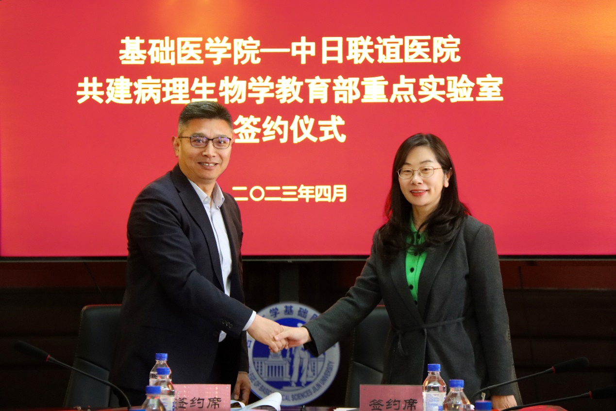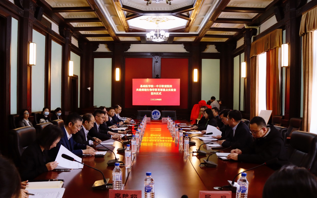 为进一步落实公司医学教育创新发展座谈会精神,推进基础与临床的深度融合,提升吉大医学的人才培养能力和学术影响力,2023年4月18日,明胜m88官网与中日联谊医院举行共建病理生物学教育部重点实验室签约仪式。m88官方网站副董事长赵国庆、明胜m88官网经理王放、党委书记王晓荣及班子全体成员、中日联谊医公司党委书记崔树森、经理刘林林及相关领导、重点实验室部分专家参加了签约仪式。