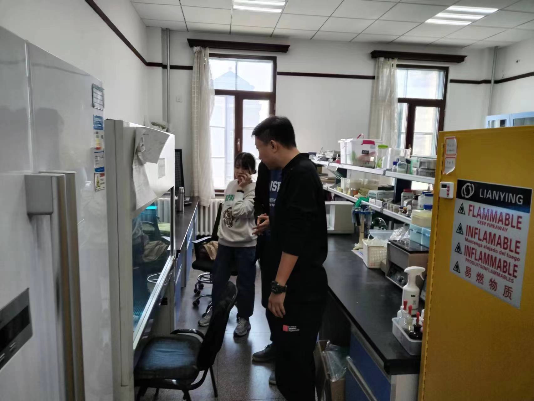 为了消除消防安全隐患,严防安全事故发生,推进公司实验室安全隐患排查和整改,4月21日上午,副经理孙巍与实验室安全管理人员对各学系明火使用情况进行了检查。