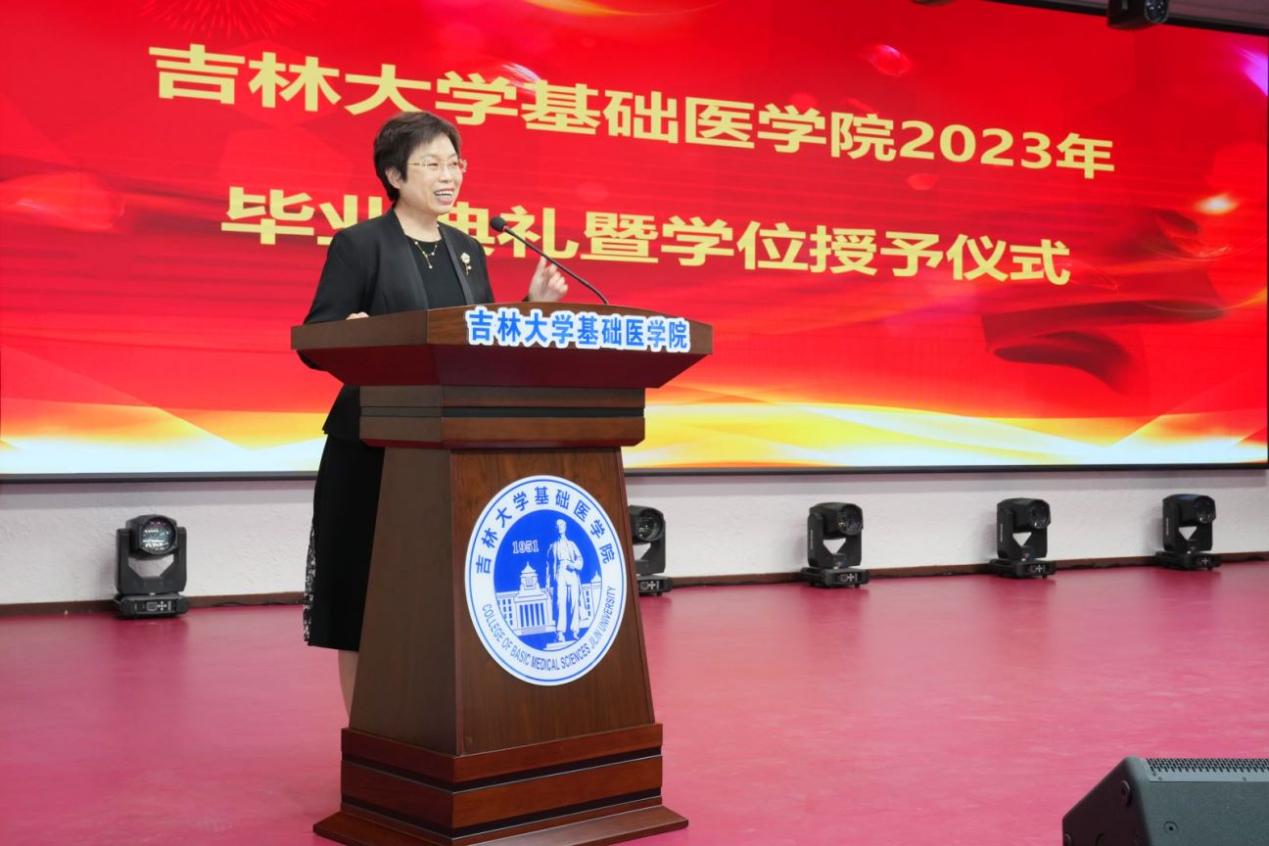 教师代表王医术教授对毕业生表达了深深的祝福,疫情期间的求学之路,锻就了毕业生们不畏困难,勇往直前的精神,也为毕业生提出三个叮嘱,首先做好定位,坚定前行,为社会奉献价值;第二要诚信做人,脚踏实地,尽职尽责,做一个有益于人民的人;最后要有良好的心态,永远以饱满的热情迎接新的挑战,保持信心面对未来。希望大家在未来发光发热的同时,要牢记自己是白求恩人,是基础人,我们永远会在基础欢迎你们。