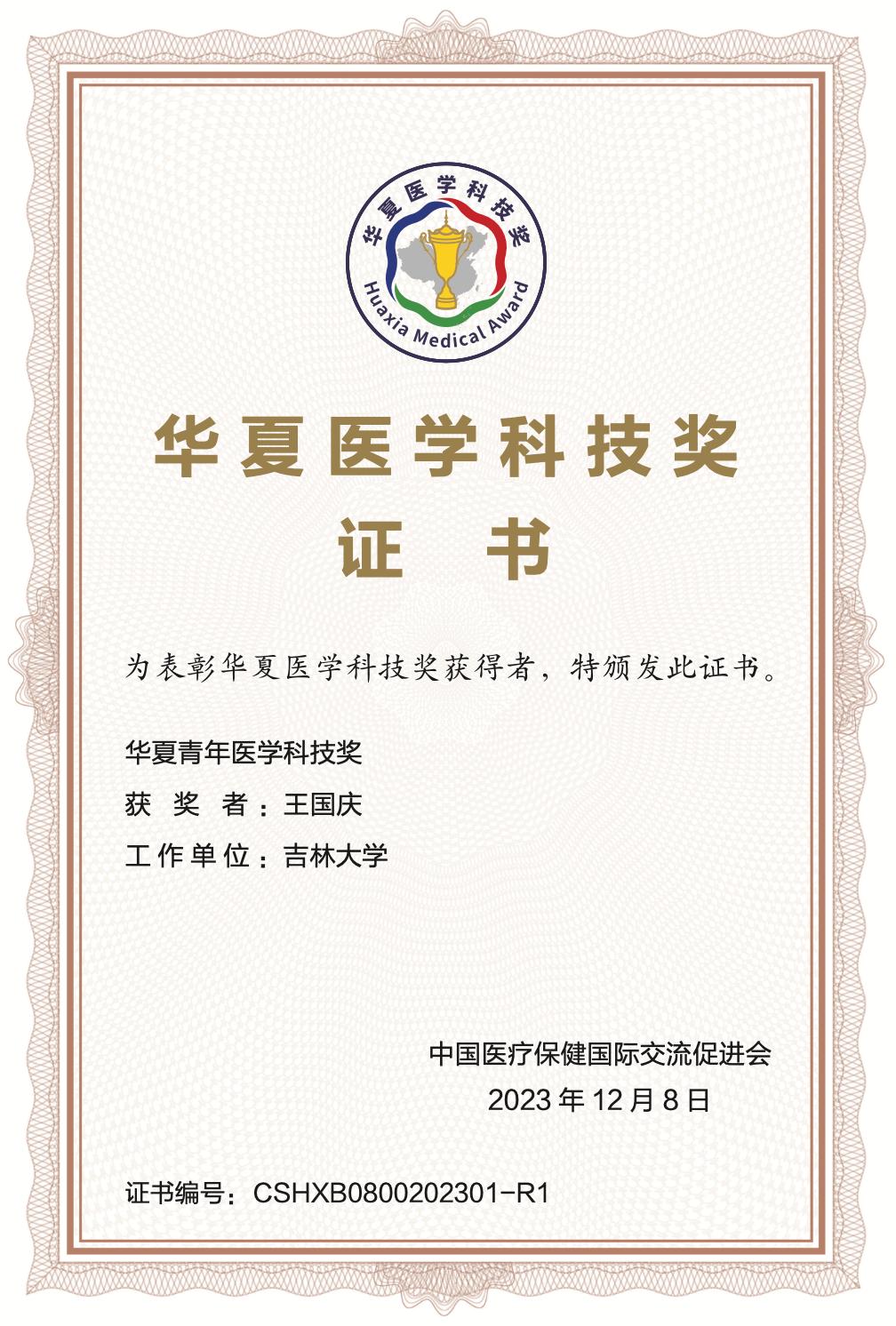 明胜m88官网王国庆教授荣获2023年度华夏医学科技奖