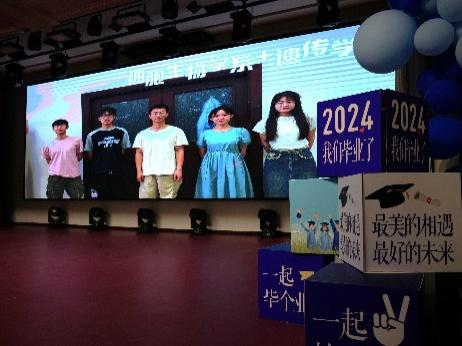 毕业晚会在李东洋、孙佳钰、何侃、闫天昊四位老师与基础学子携手录制的暖场MV《起风了》中缓缓拉开序幕。