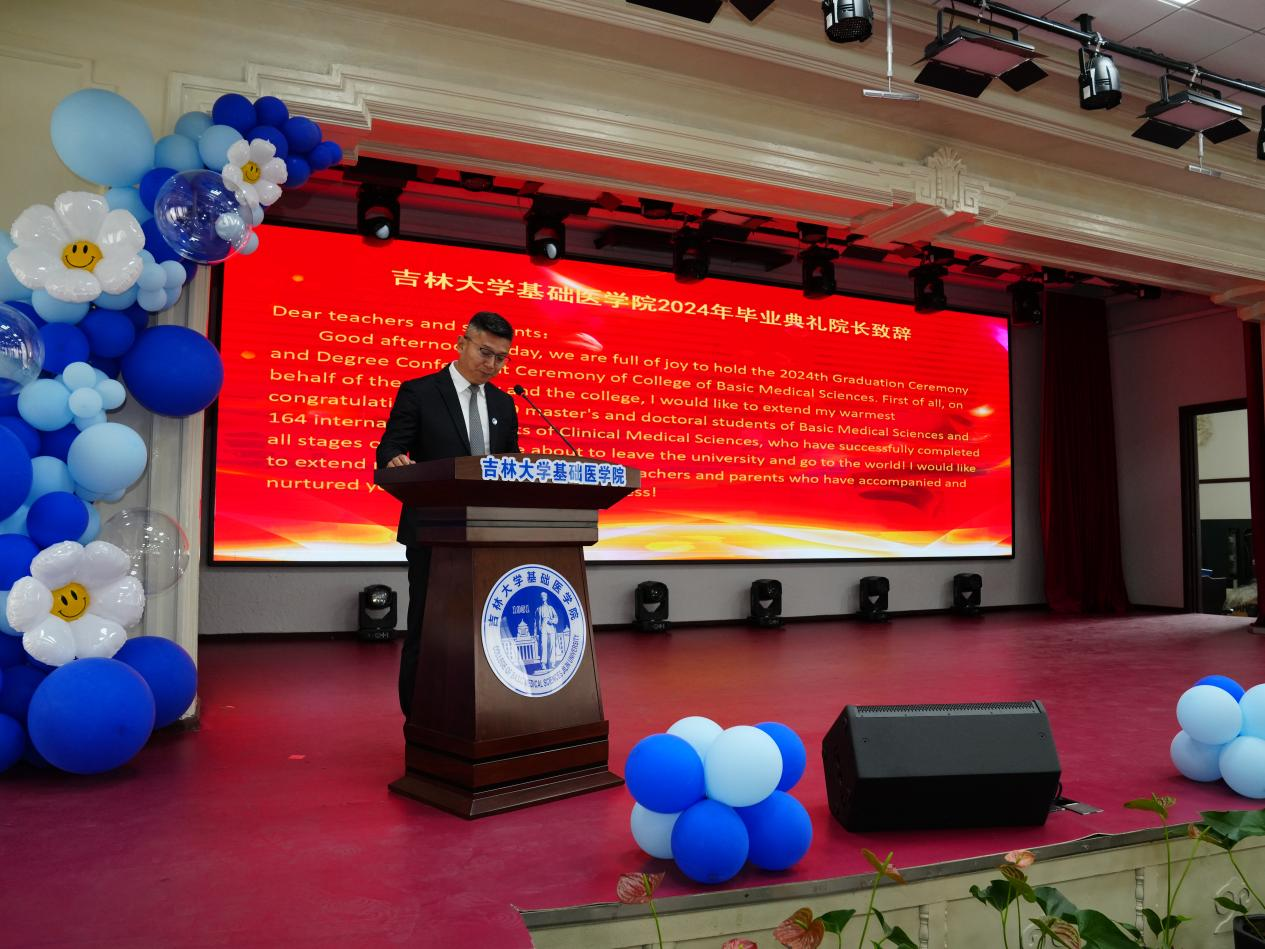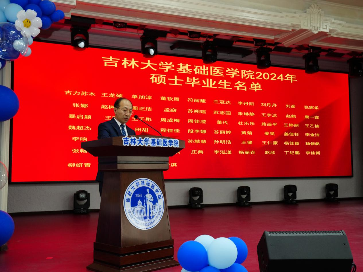 明胜m88官网经理王放致辞,向顺利完成各阶段学业、即将告别母校、迈向人生新高度的毕业生致以最热烈的祝贺。大家一同见证了公司在医学教育创新发展中取得的成就,迎来了多个里程碑意义的“第一”,感谢毕业生把美好年华留在基础,把绚烂青春献给科学研究。殷切希望大家能永远做具备严谨科学态度和保持创新精神的基础人,以在基础所学,跨出校门、奔赴祖国大地,为人民健康伟大事业做出卓越贡献。