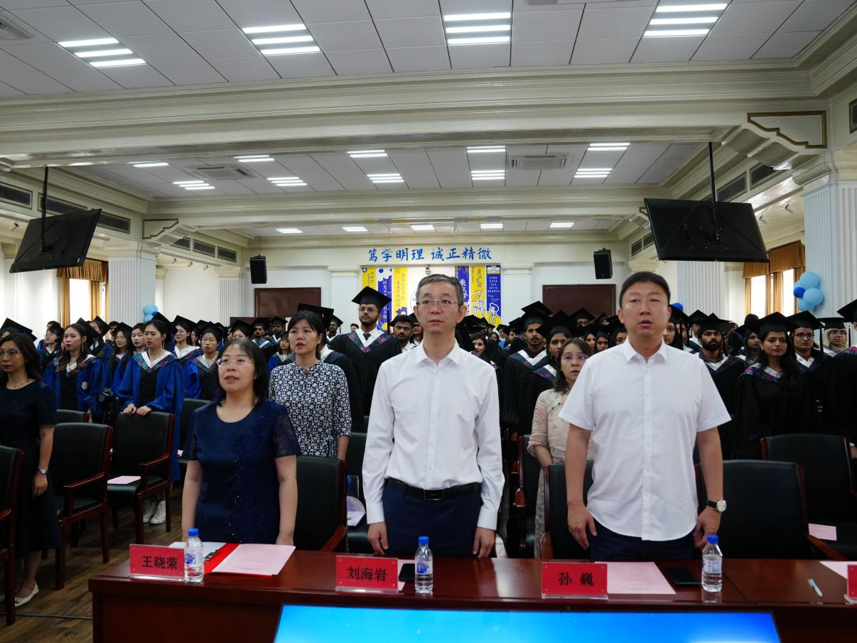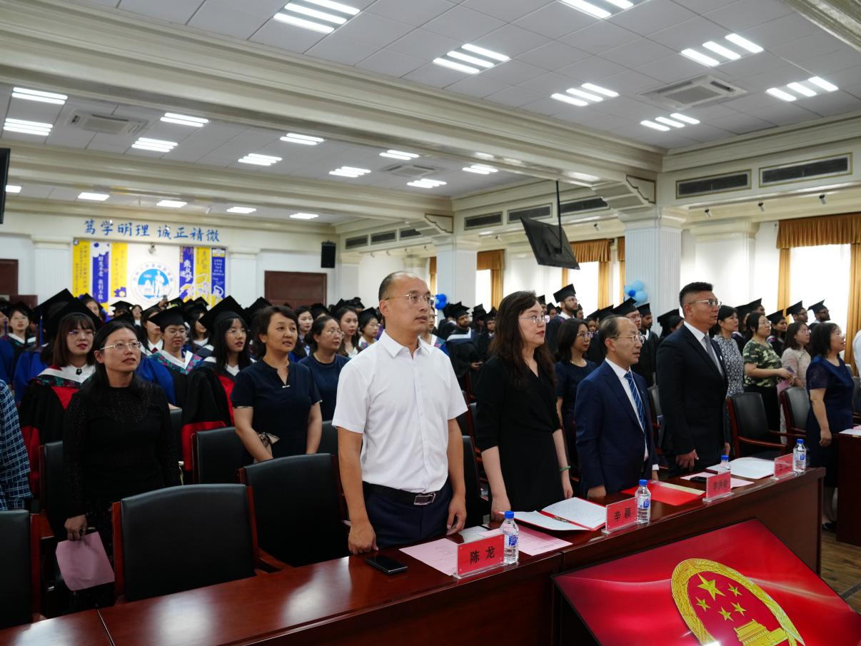毕业典礼在激昂的国歌声中拉开序幕,由副经理辛颖教授宣读职工毕业生名单。