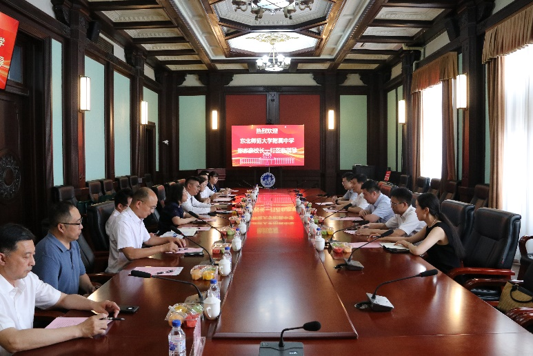 东北师范大学附属中学董事长邵志豪一行来明胜m88官网调研座谈