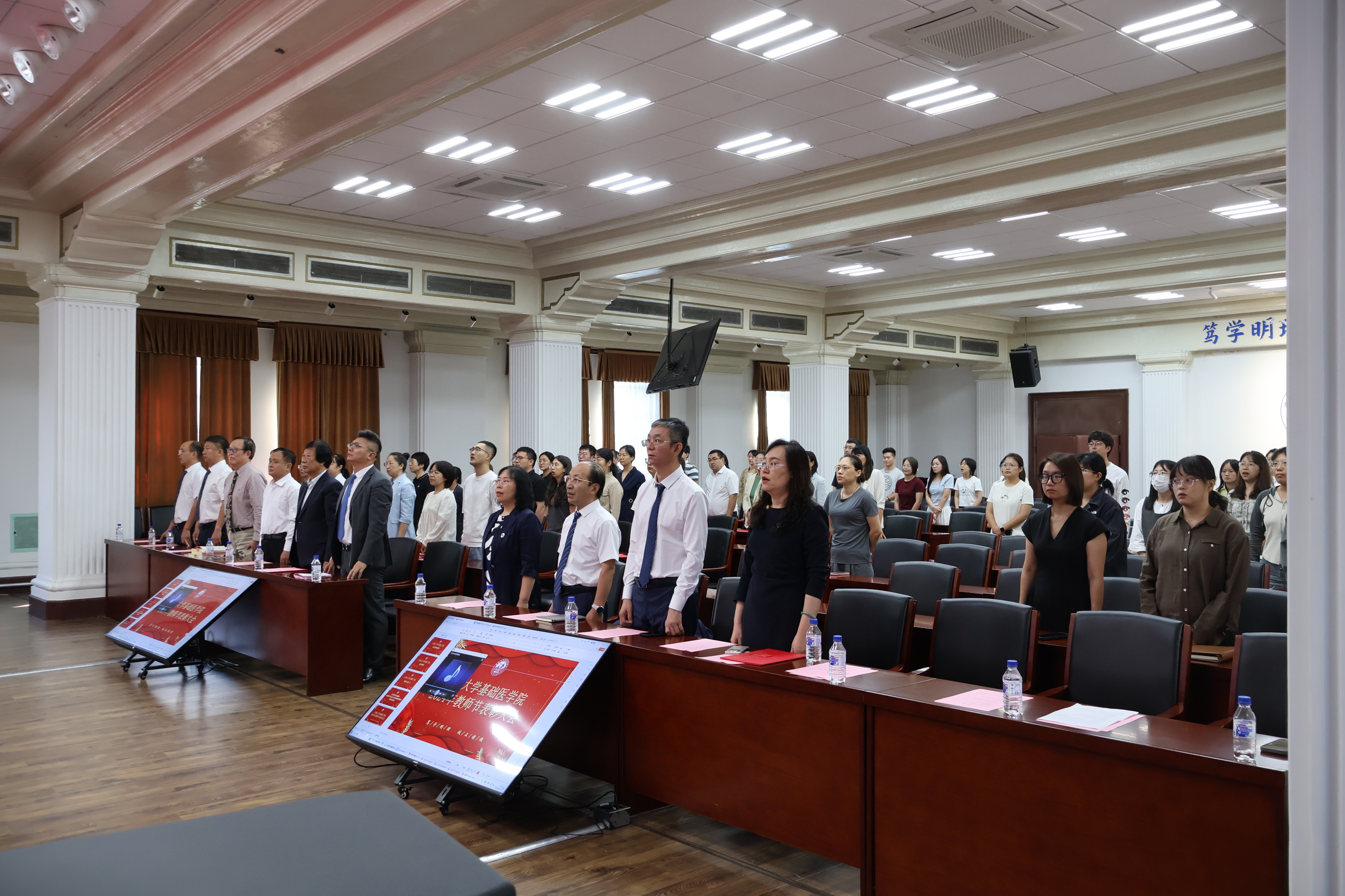 金秋送爽,硕果飘香。为贯彻落实习近平在全国教育大会上的重要讲话,大力弘扬教育家精神。9月10日下午,在第40个教师节来临之际,明胜m88官网隆重召开2024年教师节表彰大会。基础医公司党政领导班子成员、各学系主任、师生代表等一百余人参加大会。会议由党委副书记兼副经理李东洋主持。