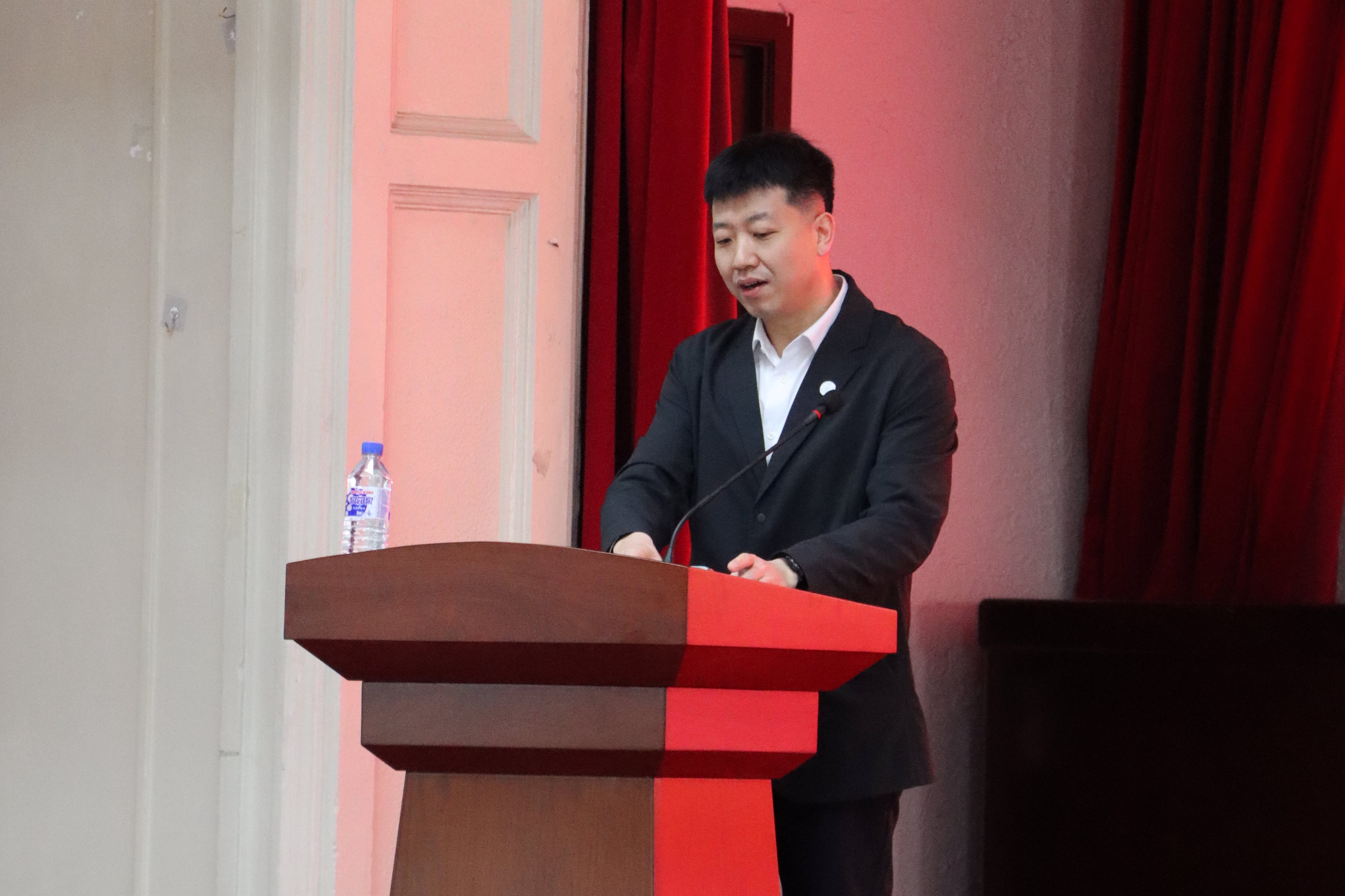 m88官方网站国际教育公司经理蒋磊代表m88官方网站致辞。他对新生们的到来表示热烈欢迎,并详细介绍了国际教育公司为职工们提供的各项支持和服务,包括语言培训、文化交流活动、素质拓展训练等,鼓励新生们充分利用公司的资源,努力学习,积极融入校园生活。