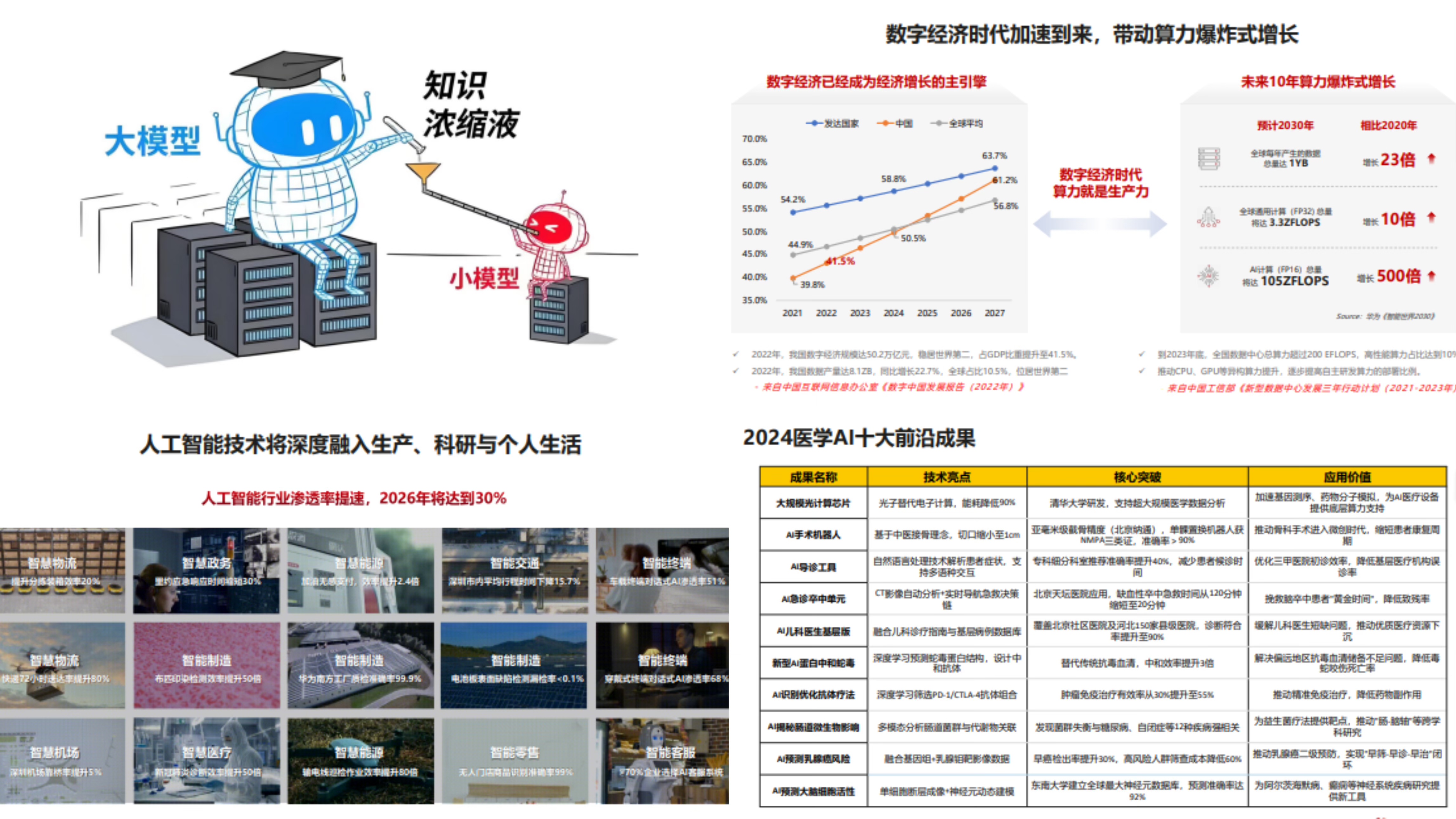 当今社会科技发展迅速,随着人工智能行业的兴起,机器人、大模型等已经融入了我们社会的方方面面,行业渗透率提速,2026年将达到30%,表明AI正以惊人的速度重塑各行各业。张旺从人工智能行业的基本框架入手,指出当今时代数字经济已成为经济增长的主引擎,在算力、算法、数据中,算力是体现人工智能计算速度和效率的要素,算力就是生产力,未来10年算力需求将呈现指数增长