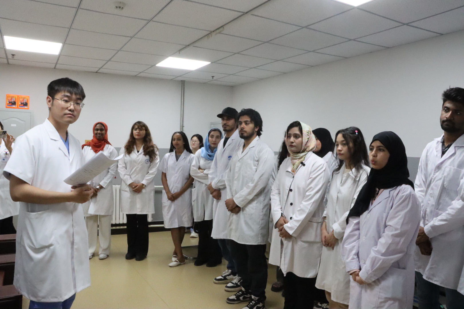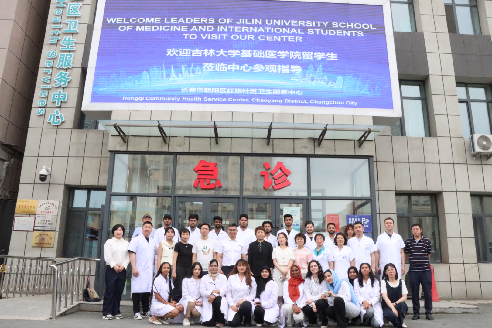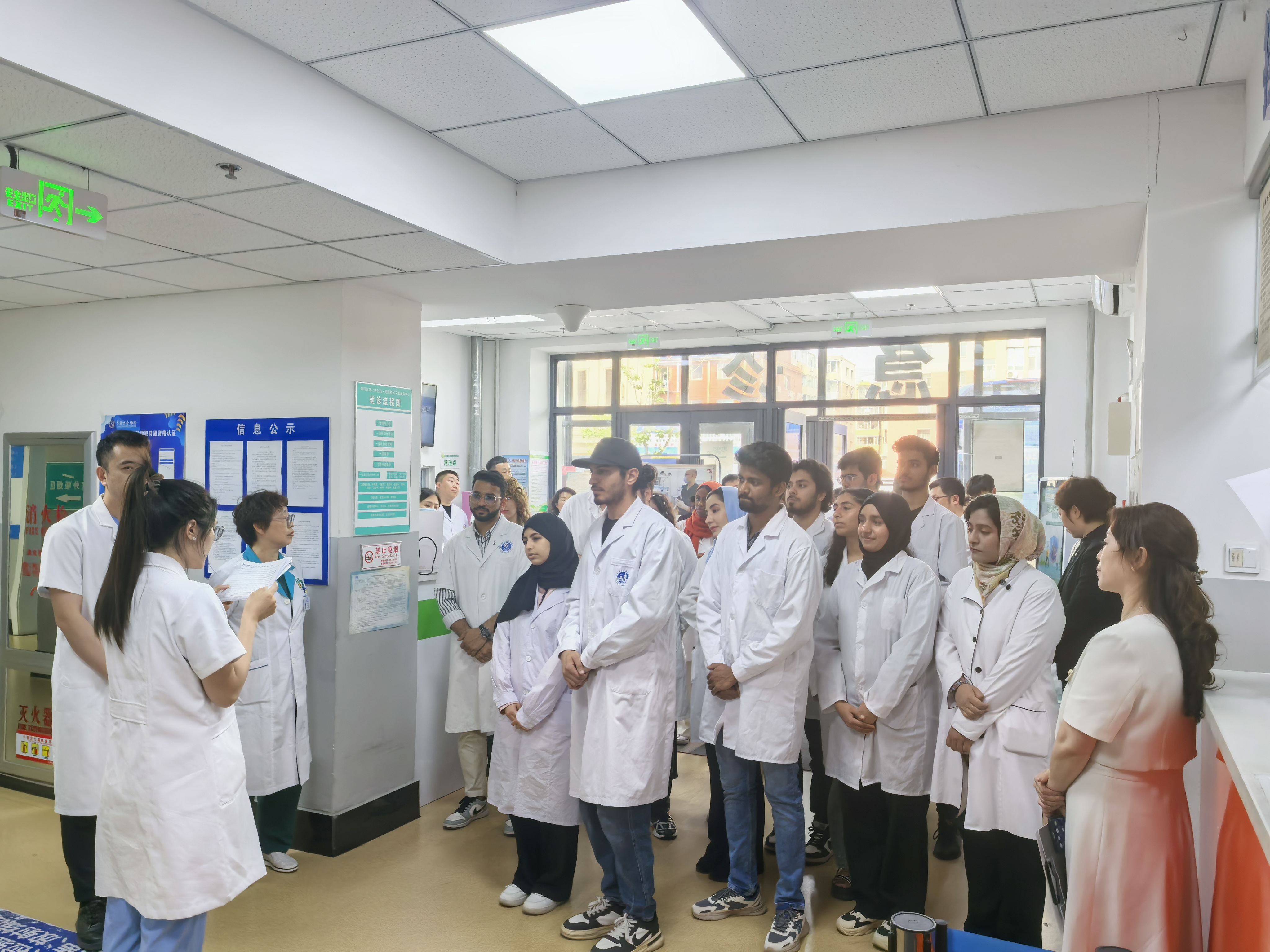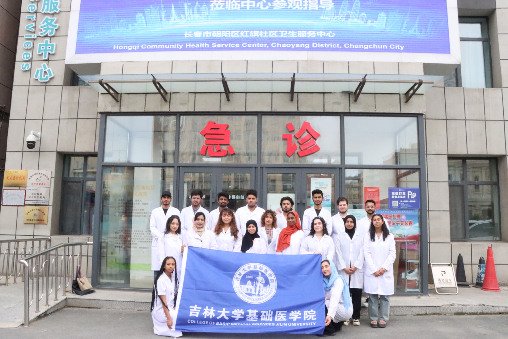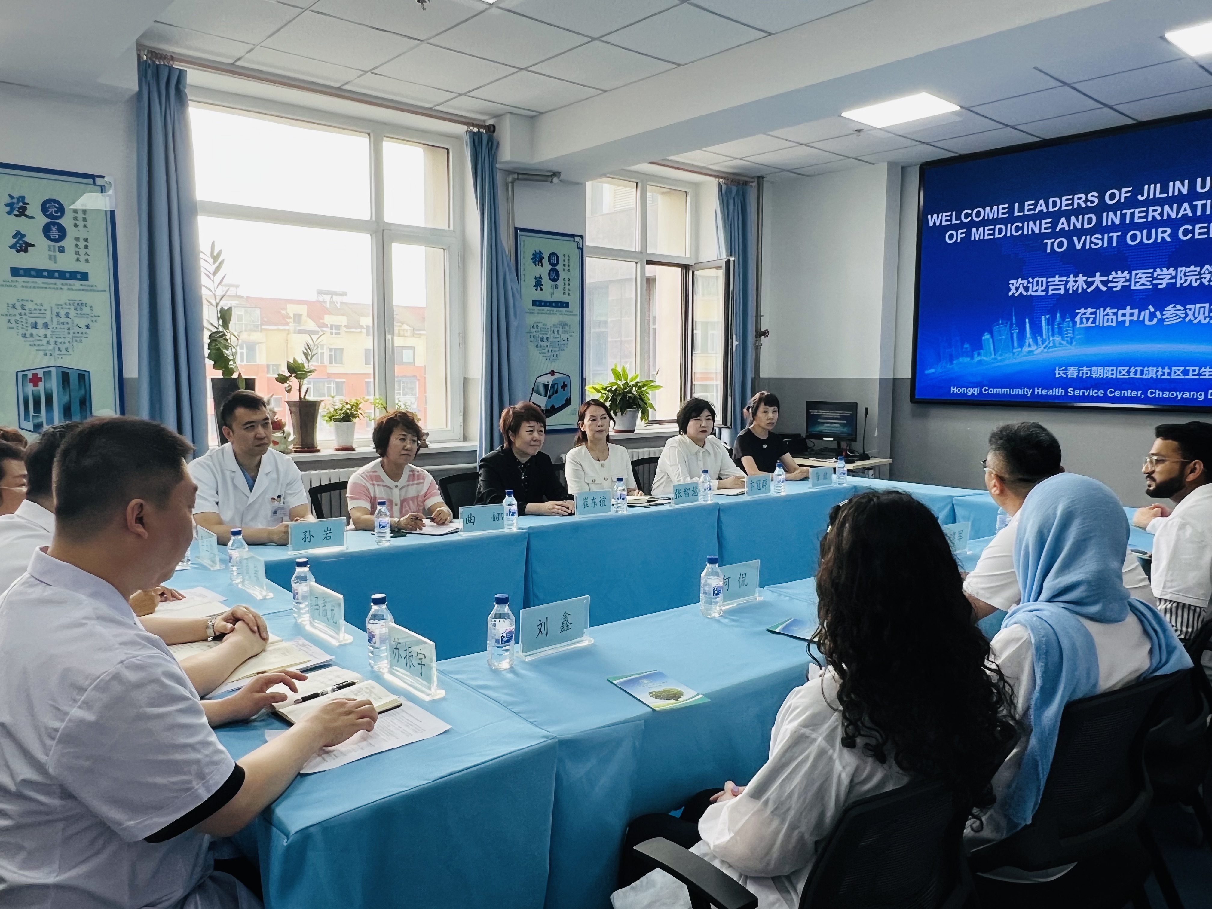 为推动政府与高校深度合作,提高来华留学临床医学专业(英语授课,简称MBBS)人才的培养质量,创新来华留学医学教育实践模式,提升职工的综合医学素养,6月18日,明胜m88官网经理王放、副经理何侃、2023级职工班主任苏建军老师以及职工办全体工作人员组织部分MBBS职工走进长春市朝阳区红旗社区卫生服务中心,开展临床实习与实践活动。长春市朝阳区卫生健康局党组书记、局长崔东谊,朝阳区卫生健康局党组成员、朝阳区计划生育协会专职副会长张智慧以及红旗社区卫生服务中心领导班子成员共同参加本次活动。