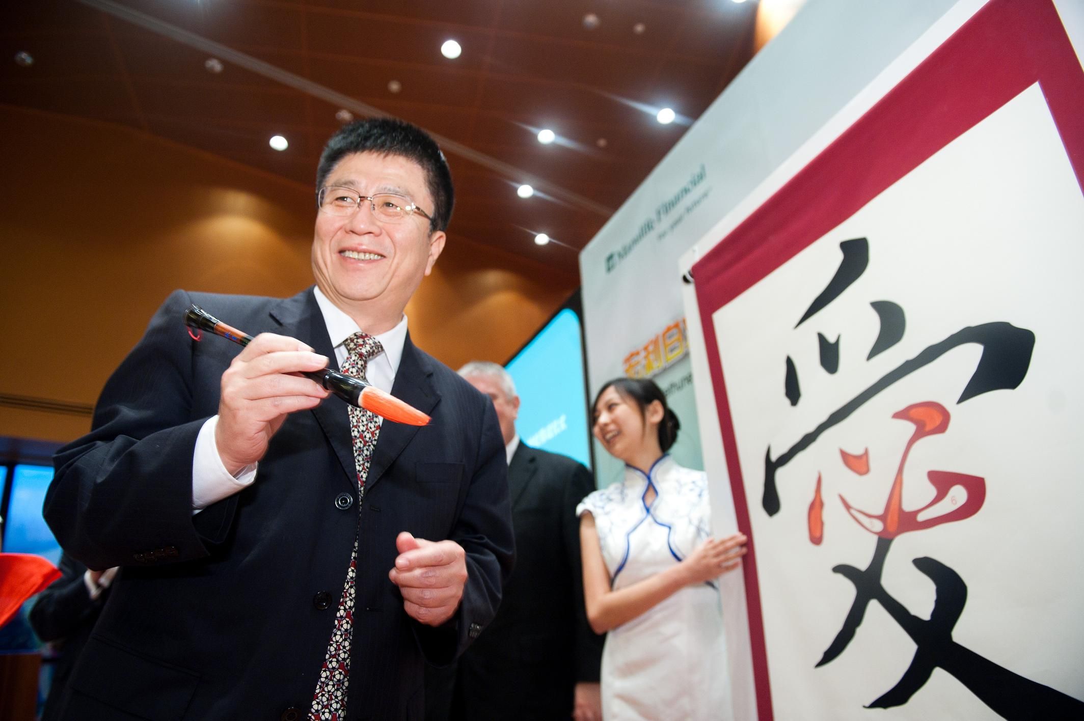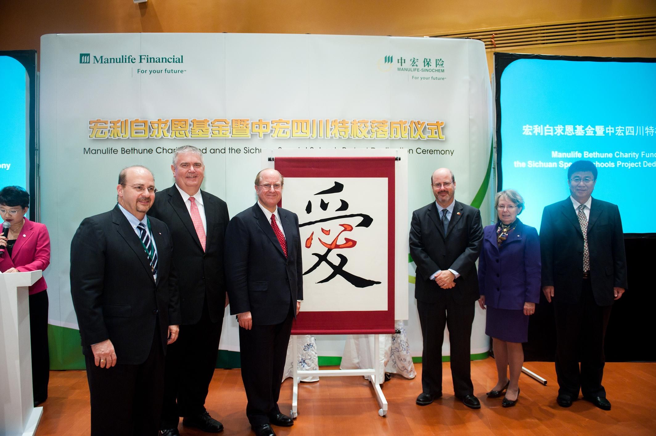 10月14日16时,“宏利白求恩基金暨中宏四川特校落成仪式”在上海世博会加拿大馆召开。m88官方网站副董事长王冠军、白求恩医公司党委书记屈英和等出席了仪式。仪式上,副董事长王冠军与加拿大大使馆公使南杰瑞、宏利金融董事长Ms.Gail Cook-bennett、宏利金融总裁兼首席执行官邓广能等进行了亲切的交流,并共同书写中国字“爱”,标志着“宏利白求恩基金”的成立。