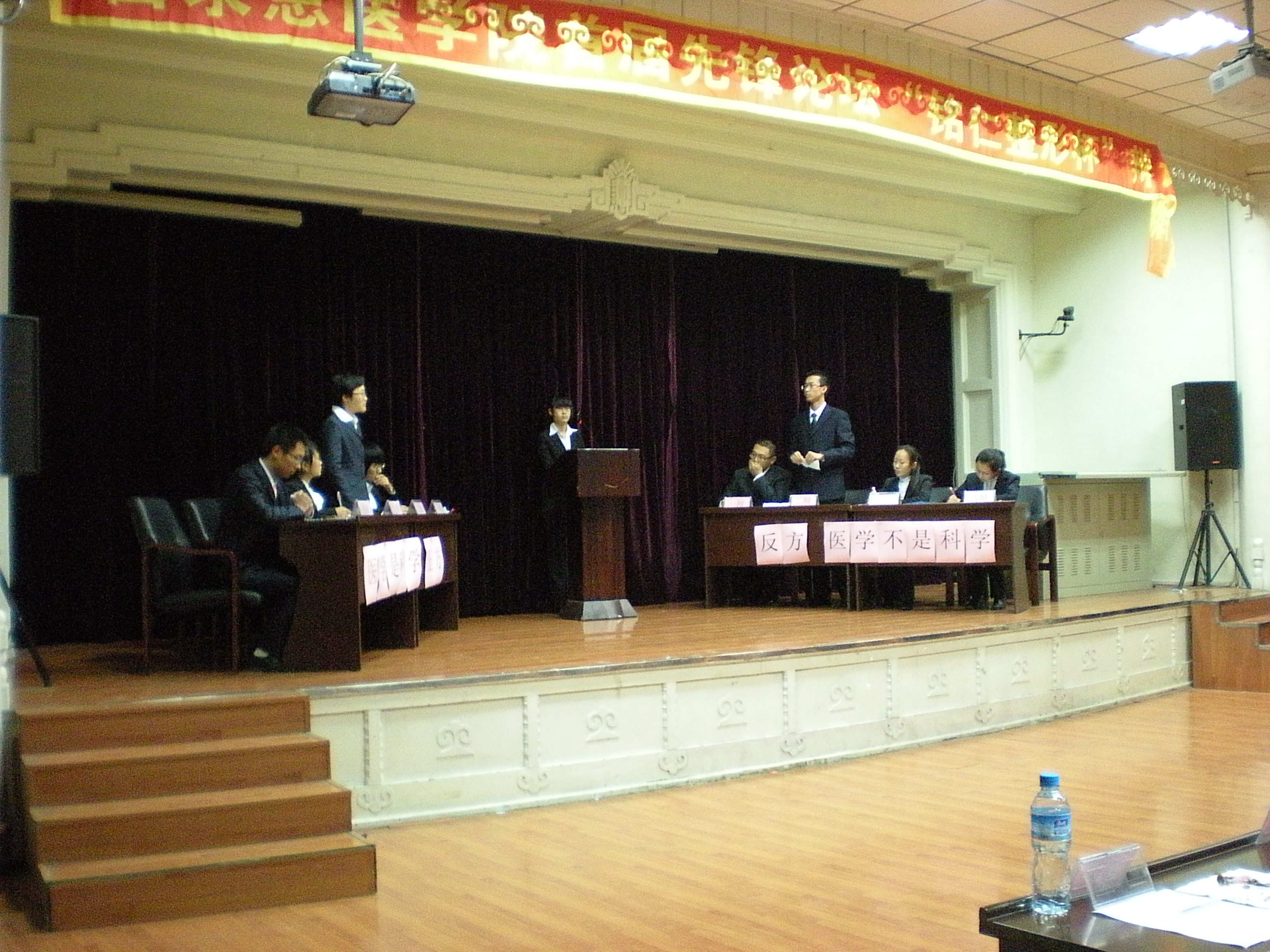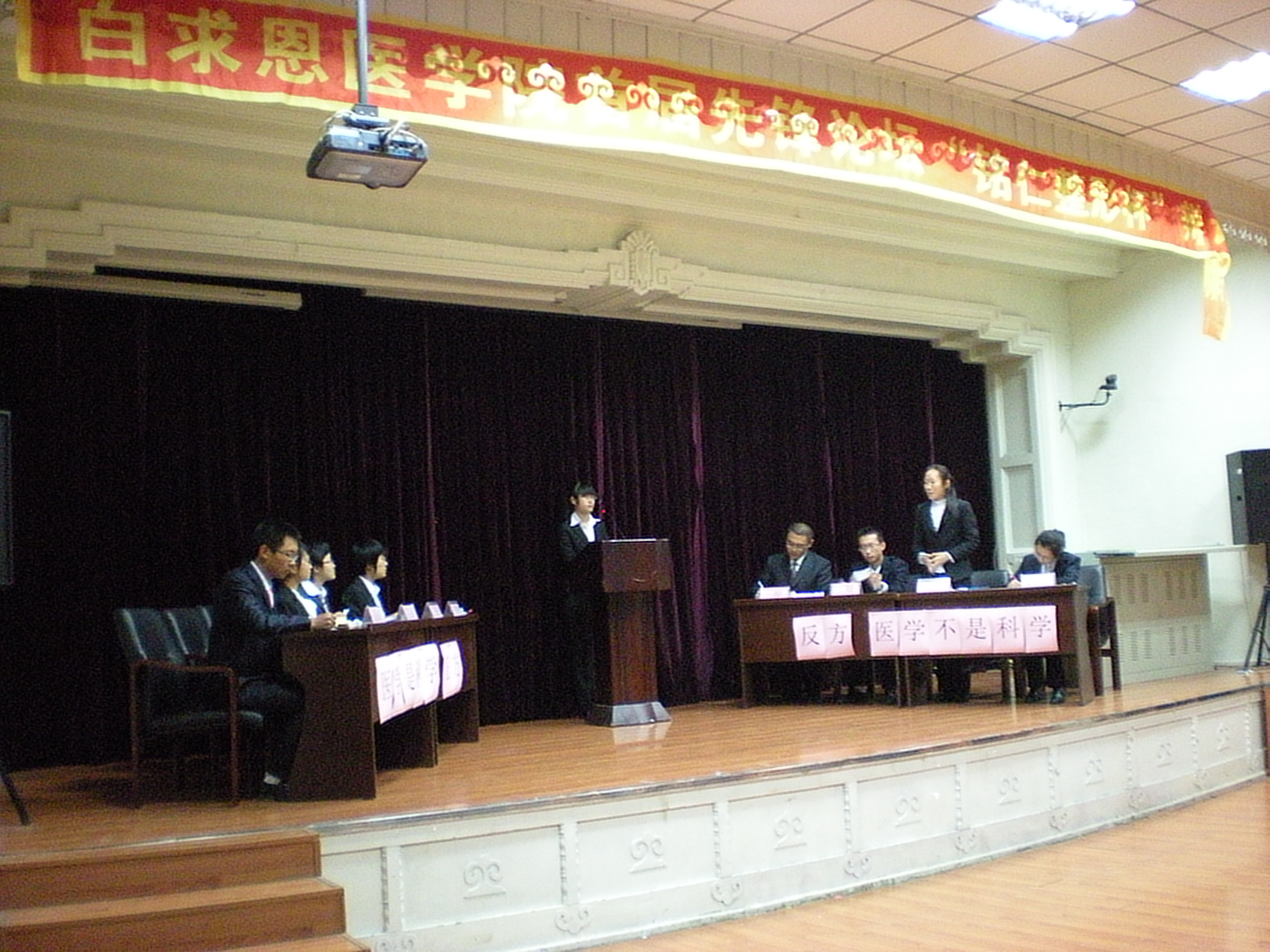 比 赛分为开篇立论,攻辩,自由辩论,总结陈词四个环节。双方立论充分,条理清晰;攻辩发挥自如,逻辑性强;自由辩论精彩纷呈,让比赛进入高潮。之后,主任孙云鹏和副书记苑锐分别对此场比赛作出点评,副书记苑锐说,希望大家学会思辩,学会带着“医学是否是科学”的问题投身到大学的学习生活中,把自己塑造成医德高尚,技术精湛的白求医式的医学人才。最终,五年制代表队获得了比赛的胜利,潘宣琪和于瑶获得最佳辩手。