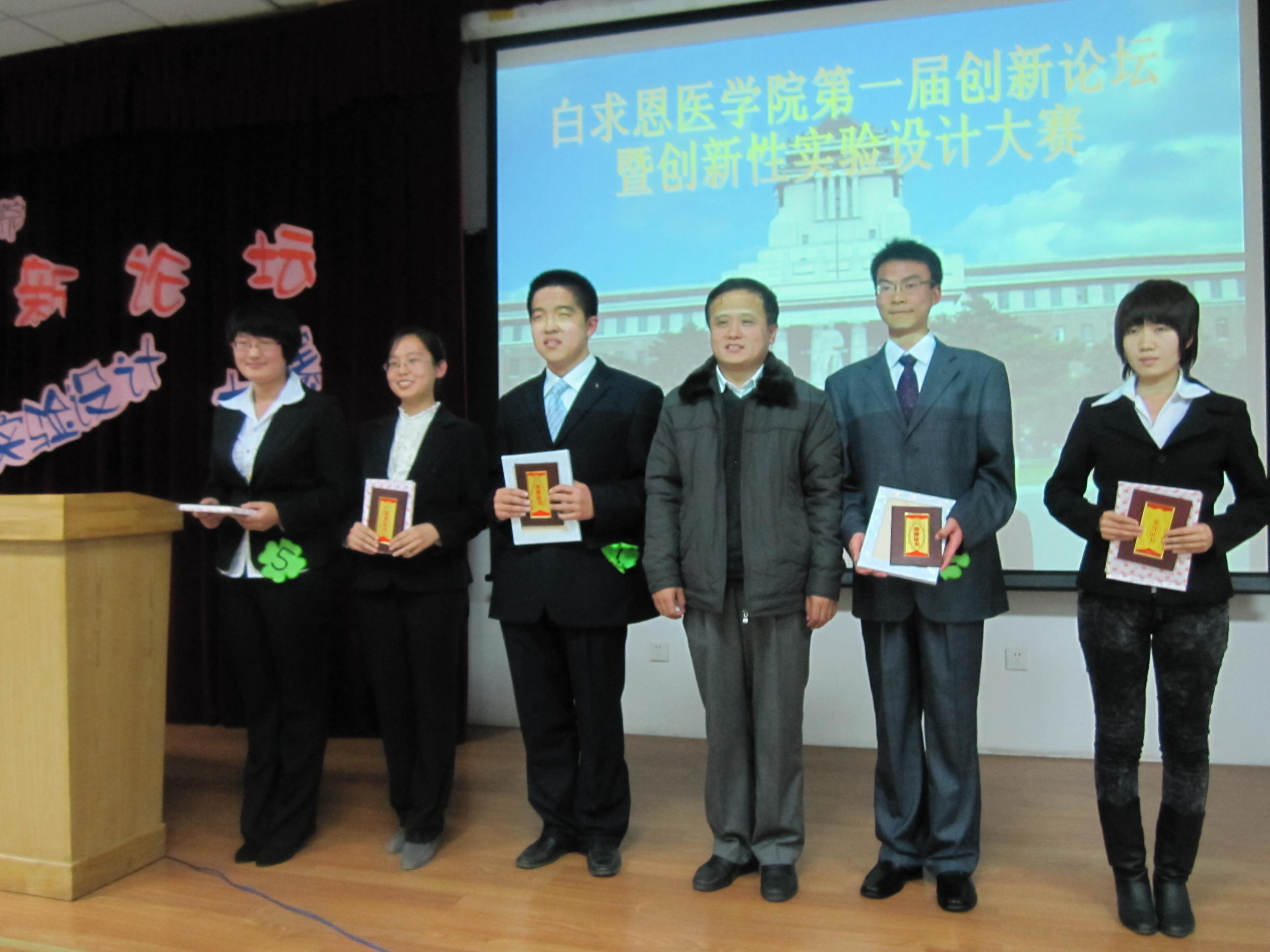 比赛结束后,2010年首届全国老员工基础医学创新论坛暨实验设计大赛全国二等奖获得者孟浩简述了自己参加全国大赛的过程及感想。常务副经理孙连坤对本次比赛进行了点评,并为获胜者颁奖。常务副经理孙连坤指出,创新精神是现今社会医学人才必备的素质,是提升自身竞争力的必要条件,同学们要拥有探究性和批判性思维,全面提升自身素质。
