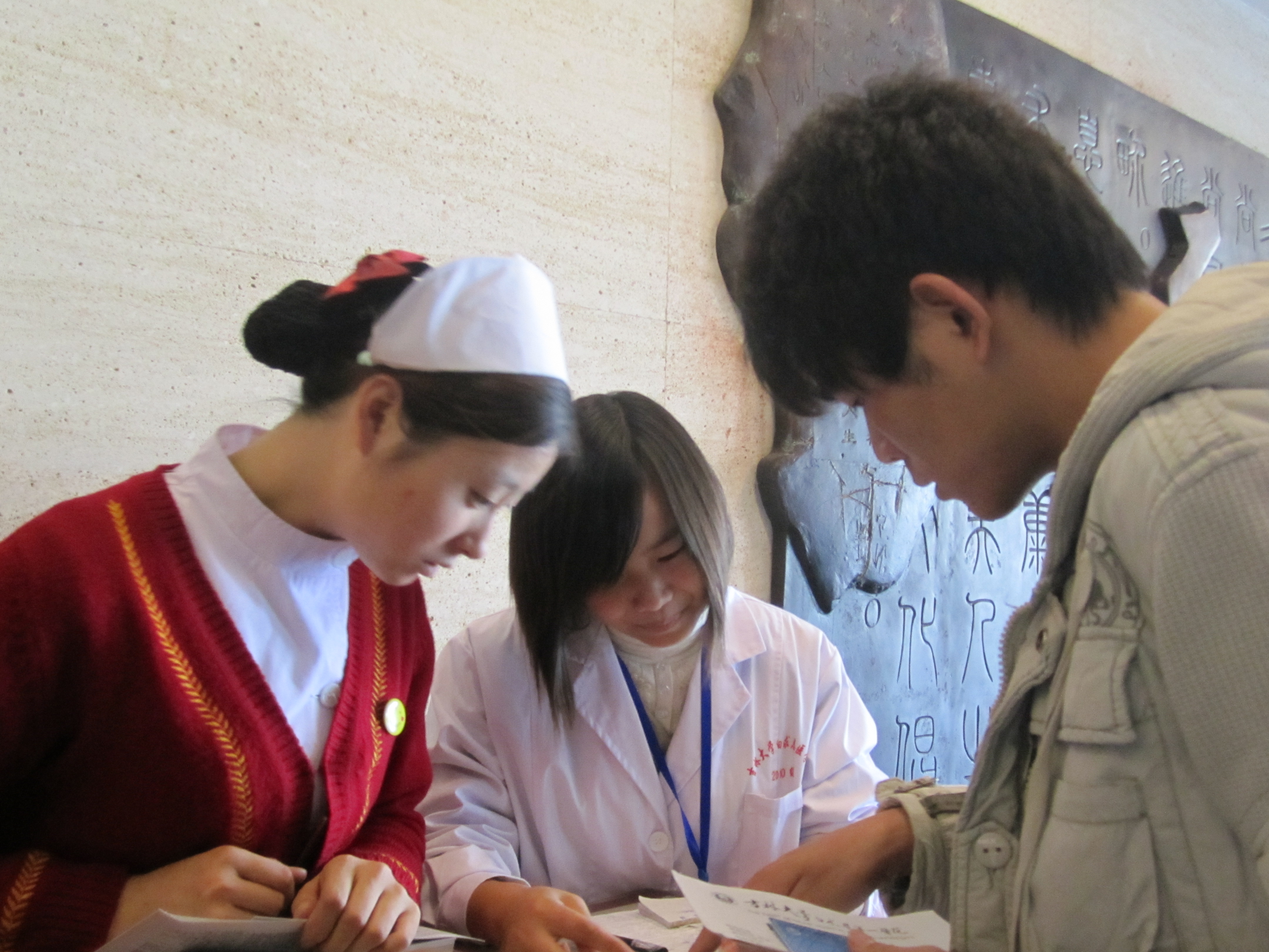 10月30日,白求恩医公司青年志愿者协会继续组织志愿者走进m88官方网站白求恩第一医院开展志愿服务的活动。本次参加服务工作的志愿者中出现了2010级新生的面孔。虽然他们还没有接触专业知识,但却在义工工作中表现了极高的求知欲。为病人导诊、帮助病人填写门诊病历等,志愿者们对待每一个细节都十分的用心,他们也表示很高兴能有这样的机会与患者交流。活动结束后,多名志愿者都表示这种早期接触临床的活动对自己很有意义,希望今后能多参加此类活动。