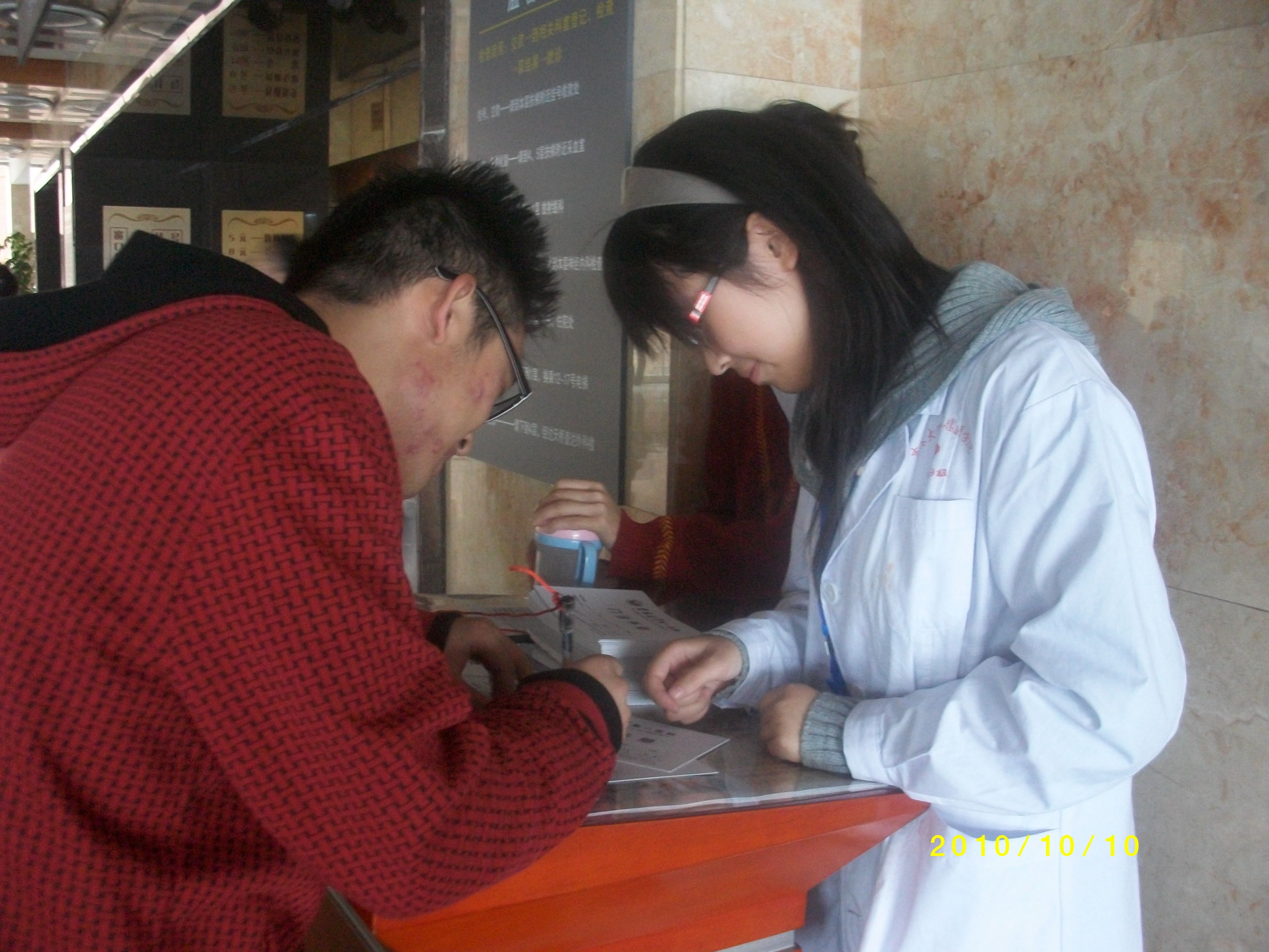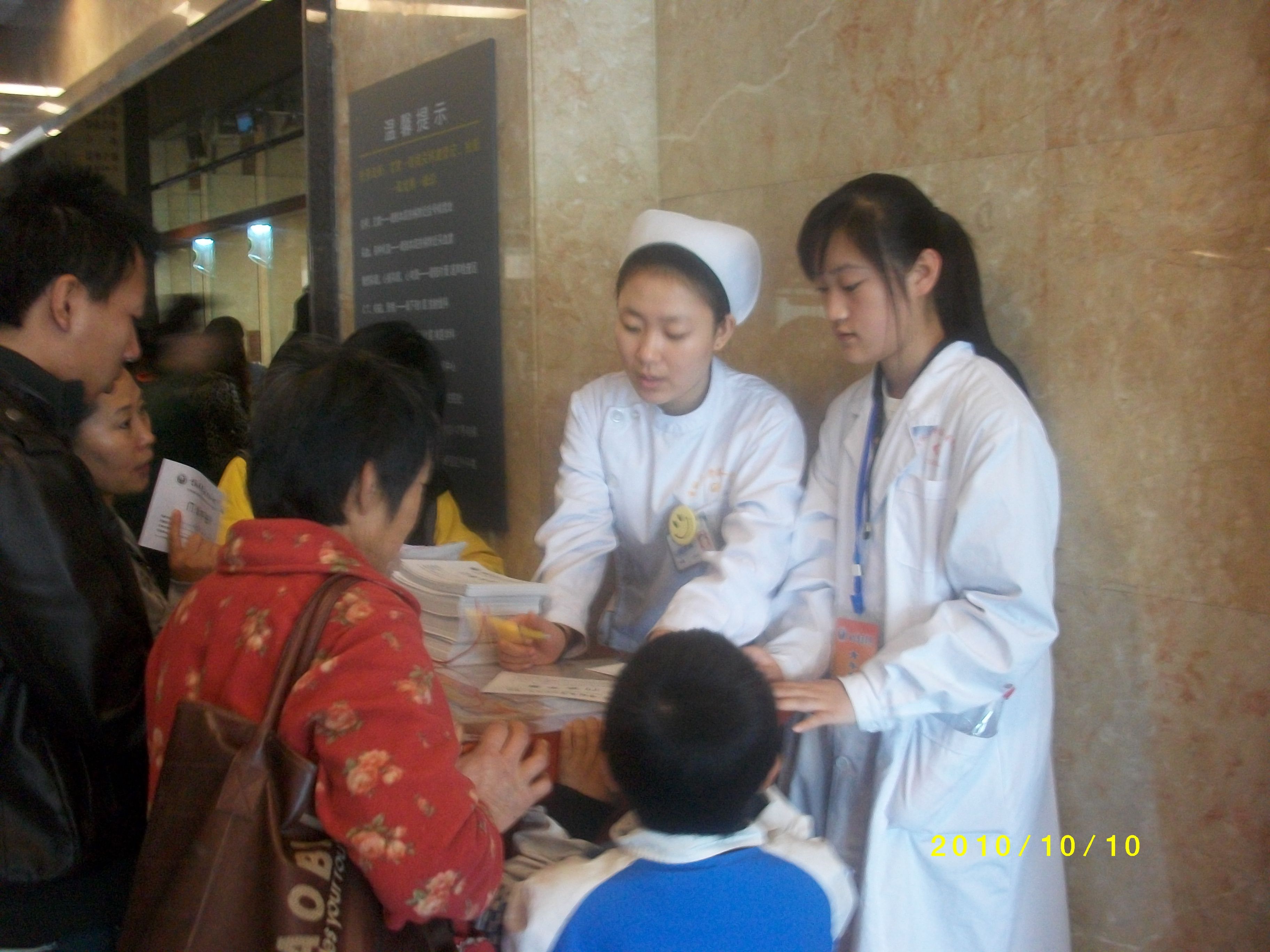 随后,志愿者们分别到门诊各科室进行导诊和分诊的服务活动。08级的林菲菲同学被分配到门诊药房做导诊,工作时,看到一个妇女抱着一个痛哭流涕的小宝宝,她朝小宝宝笑了一下,小宝宝就停止了哭泣,也露出甜甜的笑容。这让她感受到作为义务工作者笑容的重要意义。事实上,她平时并不是乐于参加各类员工活动,这次是带着对临床工作的憧憬报名的,她表示公司组织的这次活动针对性很强,第一次义工体验让她收获很大,今后有机会要多参加各类活动。09级的牟胜男同学被分配到前台大厅导诊。她的体会是:导诊是医院的门面,是患者对医院的第一印象,但同时也是最容易与患者发生冲突的地方,有时候会被辱骂,面对蛮不讲理的患者,甚至会挨打。因此导诊的工作不仅仅要有礼貌,而且面对突发事件要保持优雅的态度,还要时刻注意保护自己。08级的刘柳同学被分到妇产科进行分诊。在工作间隙,她不仅仅从医生处学习到了更多临床的知识,还更多的了解了妇产科的临床表现,将自己所学的基础知识和临床医疗进行对比与思考,加深自己对知识的了解和掌握。她说,这种义务工作为她架起了基础和临床的桥梁,让她受益匪浅。