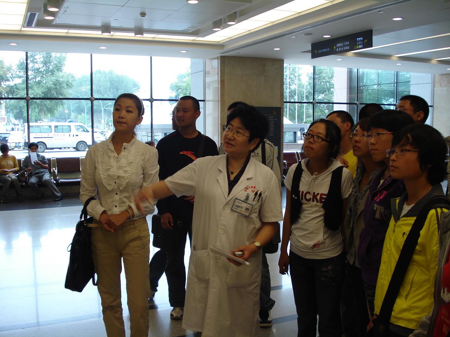 9月11日上午9时,m88官方网站白求恩第一医院博士生导师、一级主任医师、内科教授、全国优秀教师、m88官方网站学位委员会副主任、吉林省高级专家、701002班“名师班主任”迟宝荣教授组织所带班级同学参观了m88官方网站白求恩第一医院,并与同学们亲切交流。