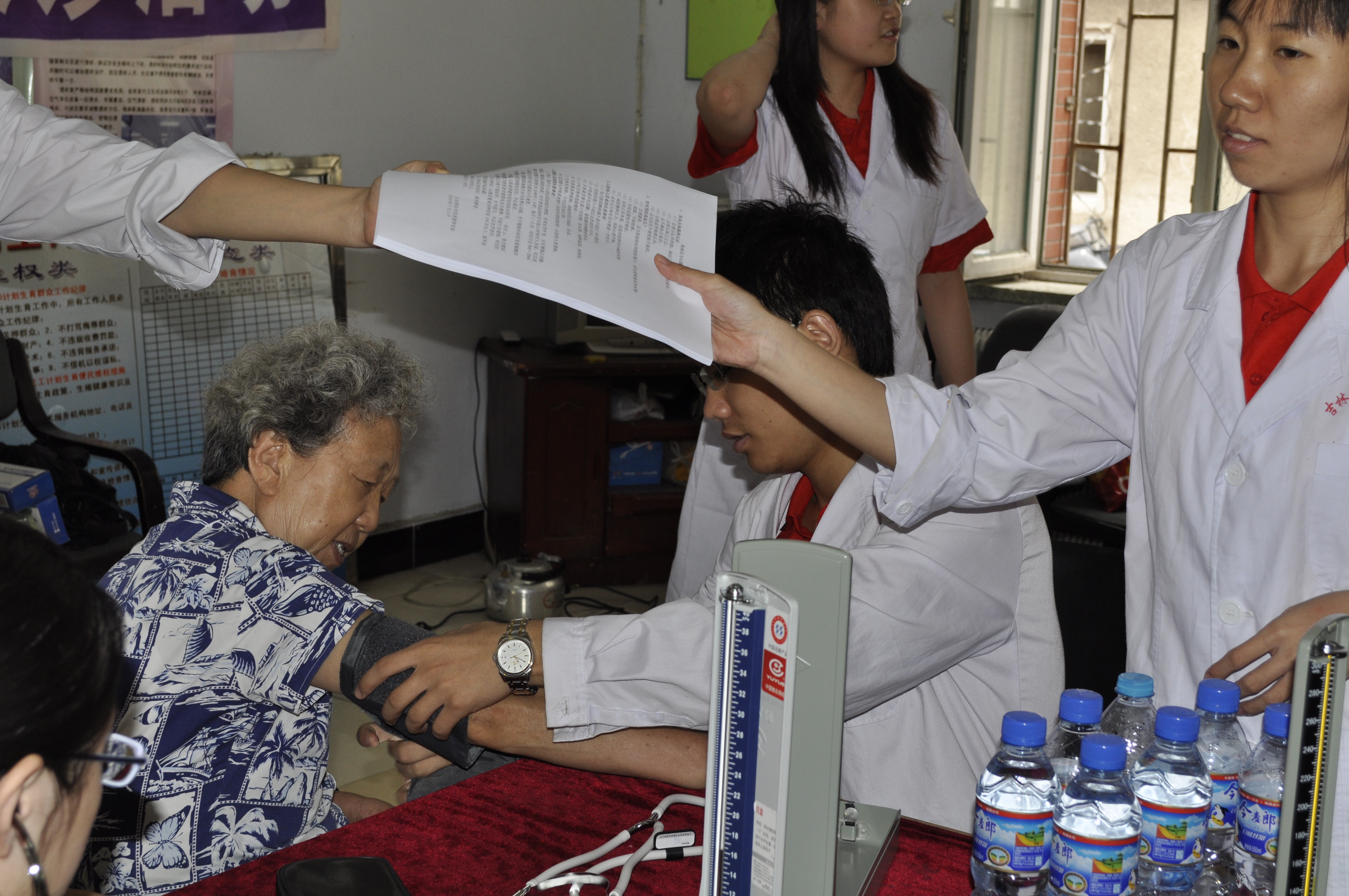 长春市普阳街道是白求恩医公司社会实践基地之一,当天公司医疗服务志愿者分成三个小分队分别在普阳街道下属的建阳社区、蓝天社区及升阳社区设立的医疗服务点为社区居民进行医疗服务与咨询。