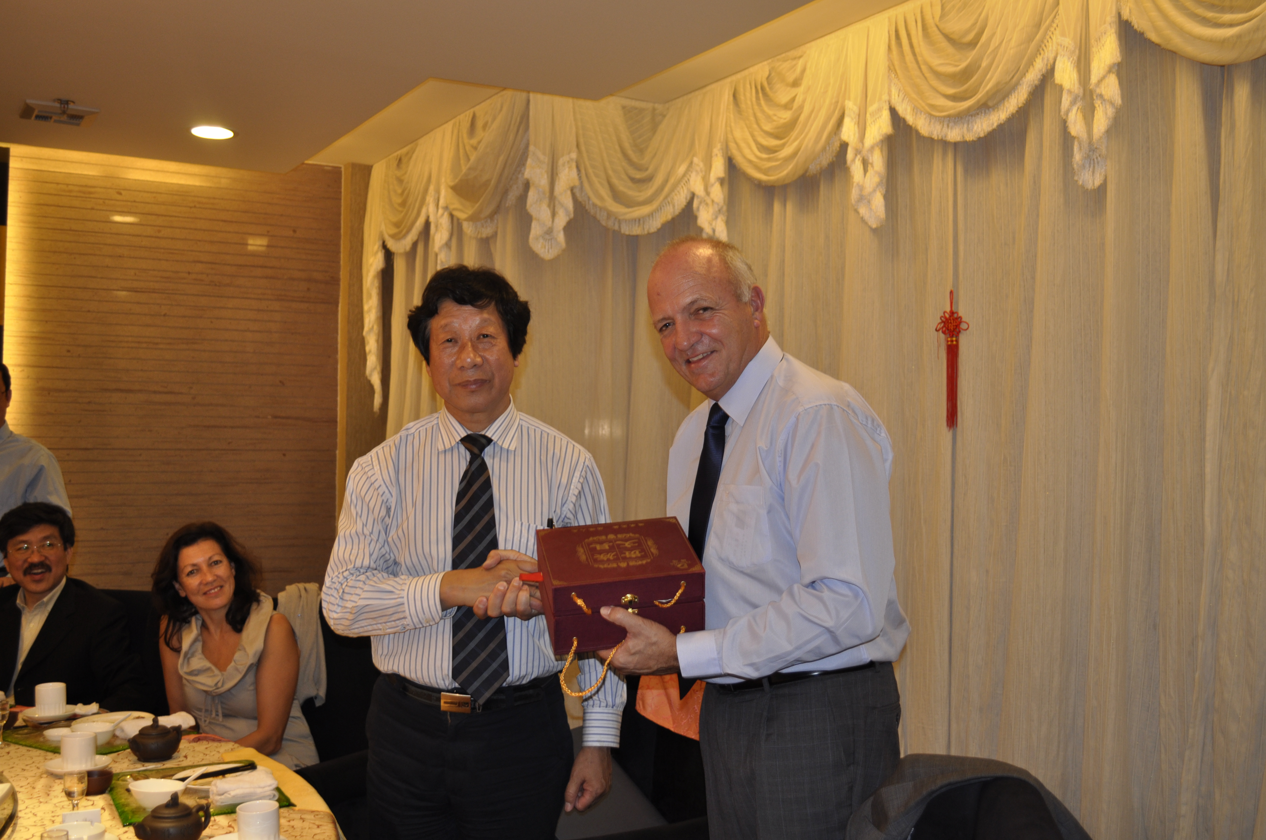 访问期间,m88官方网站常务副董事长兼白求恩医公司经理李玉林教授、白求恩医公司常务副经理孙连坤教授会见并宴请了Richard 博士和李凌松博士一行。