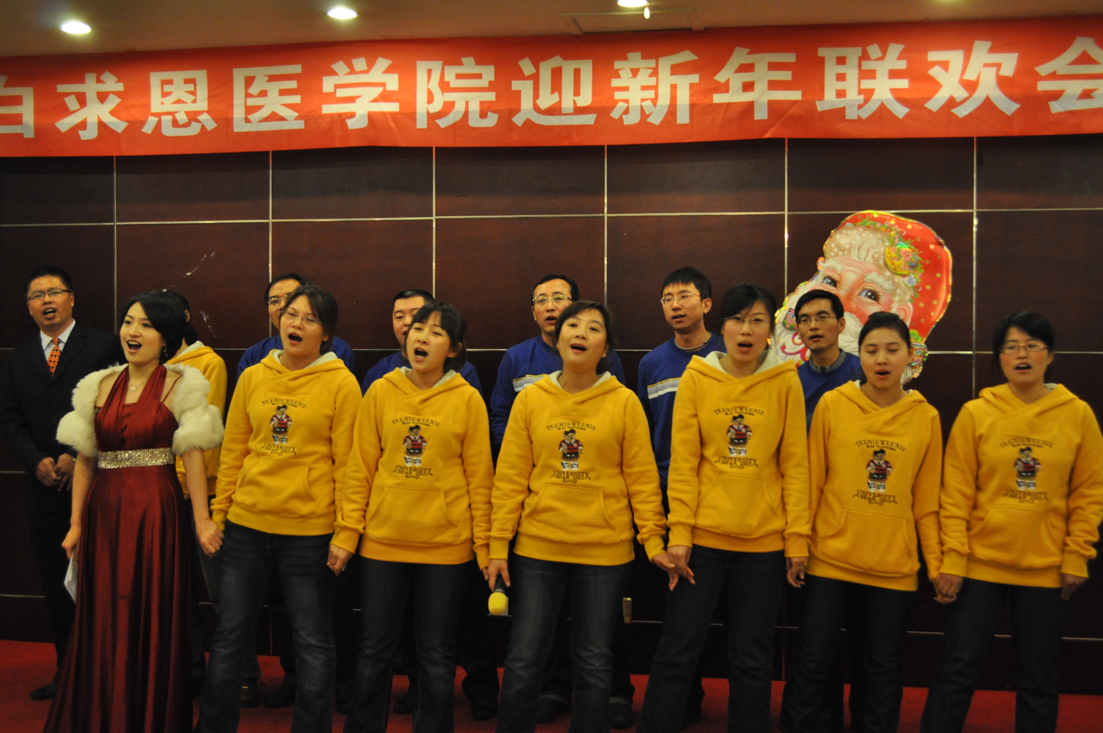 联欢会伊始,常务副董事长兼白求恩医公司经理李玉林发表了热情洋溢的讲话。首先,他代表公司对白求恩医公司一年来的工作给予了充分的肯定,代表公司向全体教职员工及参会人员致以了节日的问候和美好的祝愿。同时,对公司2009年全年的工作进行了全面的盘点。