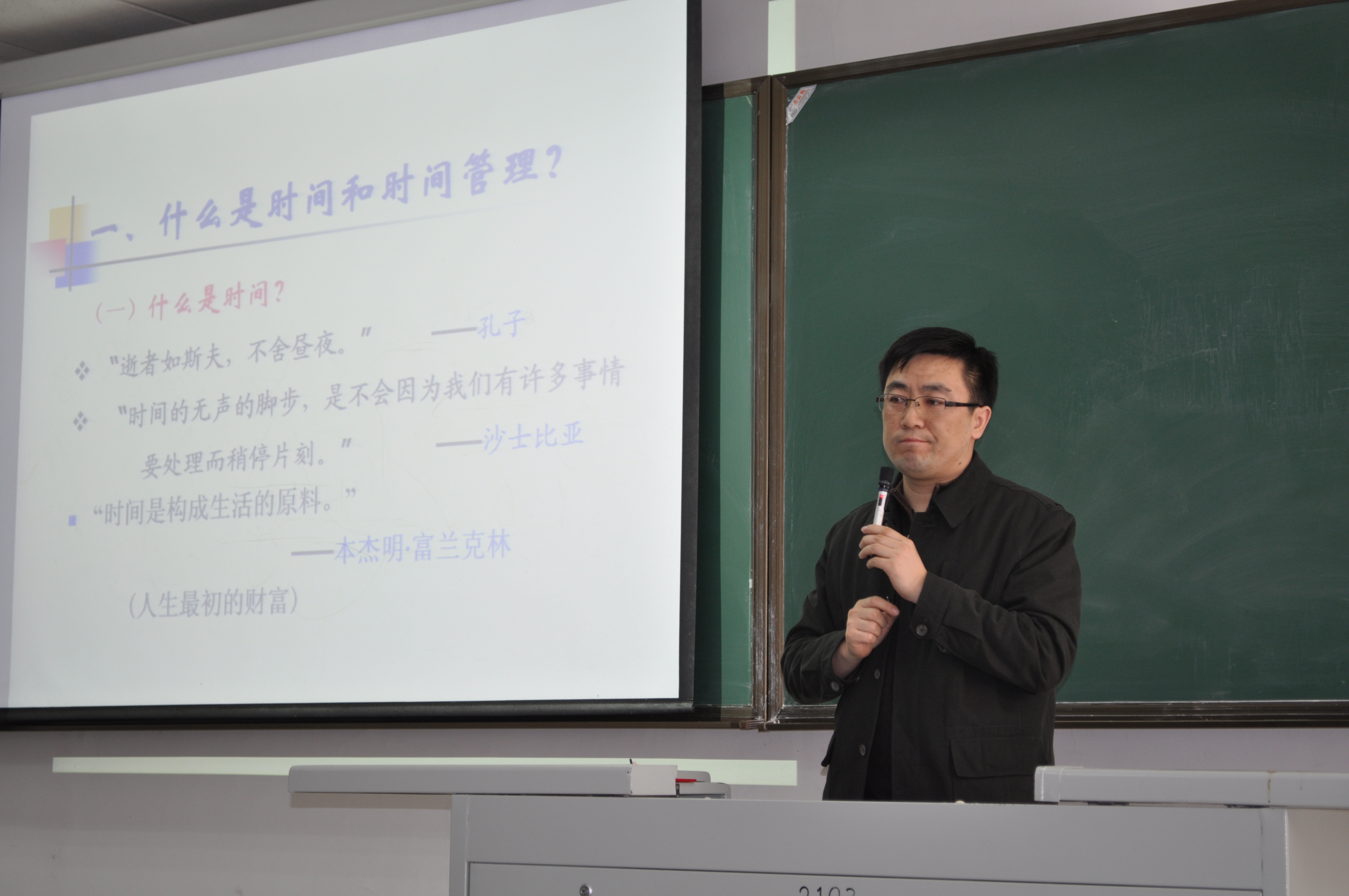 麻教授首先“以什么对你最重要”和“时间馅饼”两个练习使大家充分意识到“时间是一个人最初也是唯一的财富”。讲座中,麻教授深入浅出的分析了为什么要管理时间和时间管理的涵义、目标和结果;概述了时间管理理论从备忘录型、规划与准备型、以效率为主旨型直至强调个人管理型的发展历程;阐明了时间管理的三要素,即价值观、角色区分和使命宣言;介绍了第二象限组织法、四则运算法等时间管理的具体步骤和方法。麻教授以丰富的内容、深刻的内涵,穿插轻松的练习和风趣的故事,让在场听众深受启发,充分认识到了通过高效运筹时间,提升个人生活质量和职业生涯的效率与效能,以达到人格的完整与和谐、内心的平和与宁静。