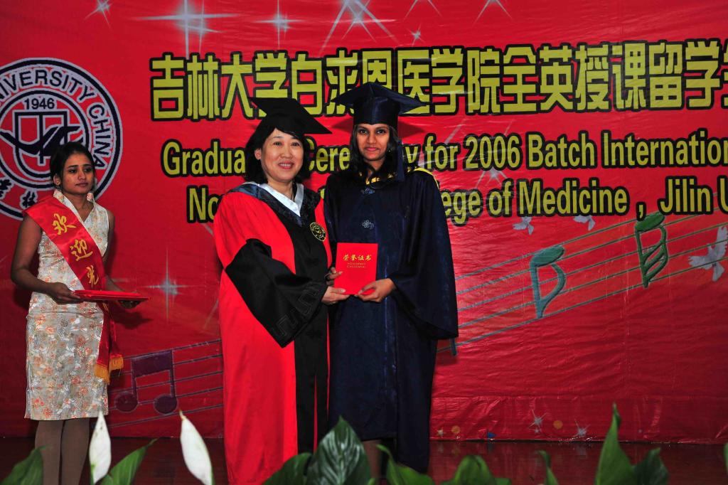 近日,白求恩医公司2006级全英授课职工毕业典礼在新民校区基础楼二楼多功能学术报告厅举行。m88官方网站党委副书记、校务委员会副主任蔡莉教授,m88官方网站董事长助理、白求恩医学部常务副学部长兼白求恩医公司经理李凡教授,国际合作与交流处、白求恩医公司、各临床公司等相关部门领导,授课教师代表、职工亲友及职工参加了典礼。典礼由国际合作与交流处副处长张广翠主持。