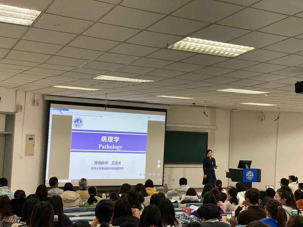 王医术教授讲授的《病理学》,以《病理学》国家精品在线课程为依托,采用线上线下混合式教学模式,讲授生动精彩,授课内容丰富多样,课堂气氛活跃。教学现场,公司领导认真听取王医术老师授课,并做了详细的听课记录;课后,对课堂设计、教学模式等进行了中肯的评价。