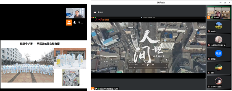 公司教师积极参与和组织课前5分钟的抗疫宣讲活动,利用上课刚开始的几分钟与员工们沟通思想、交流感情,积极弘扬了生命至上的伟大抗疫精神,帮助了员工树立抗疫必胜信心、适应在线课堂学习模式、保质保量完成学习任务。授课教师们的一张张图片,一个个小视频,为大家展示了医护工作者、志愿者们的辛苦付出,老师们与员工们在云端共同期待长春的春天早日到来。公司坚持把课前抗疫精神五分钟宣讲作为课程思政的重要环节,有效提升了课程思政的时效性,公司也将以此次活动为契机,精心打磨课程思政设计,进一步提高医学人才的培养质量。