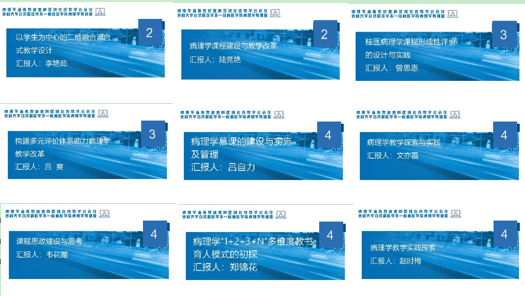 吉林、广西医学高校病理学教研室的优秀教师就病理学教学基本情况和线上教学资源应用、病理学课程教学设计和创新、病理学课程形成性评价的设置和实践以及人文素养、课程思政和教学特色等四个主题进行了精彩的汇报。明胜m88官网病理学系的李艳茹和吕爽分别以《以员工为中心的二维融合混合式教学设计》和《构建多元评价体系助力病理学教学改革》为题,分享了混合式教学模式以及形成性评价的实施经验。