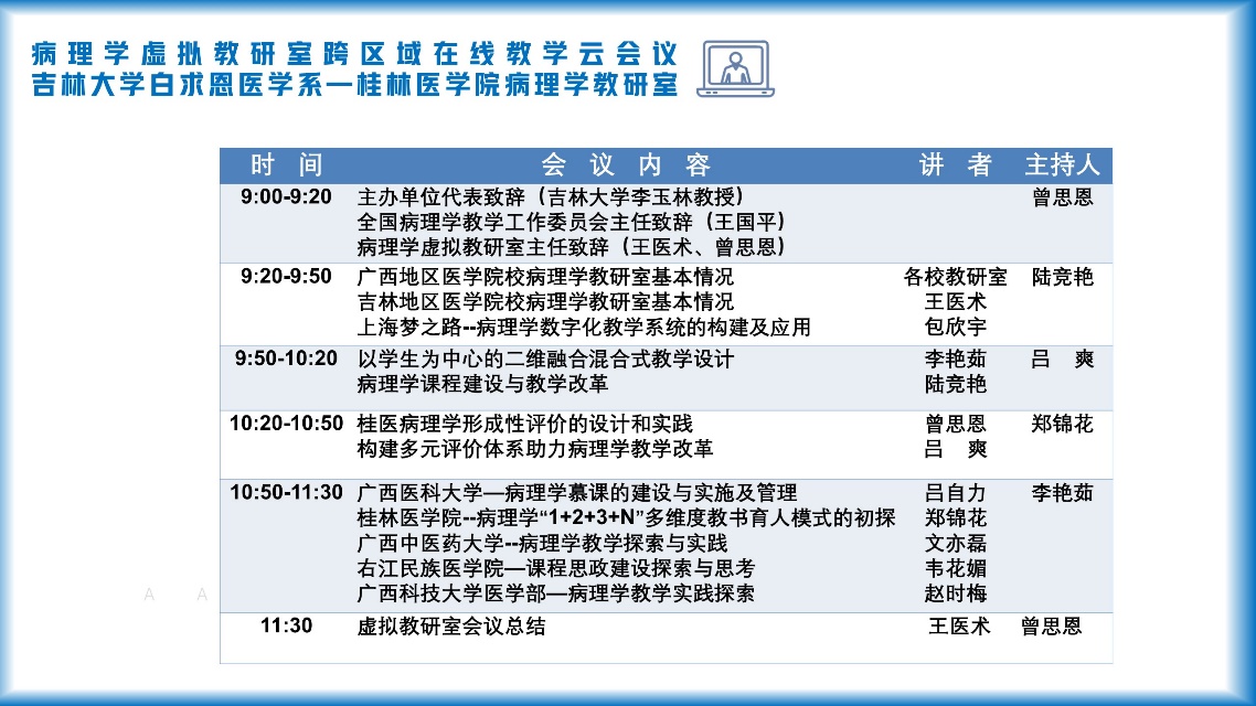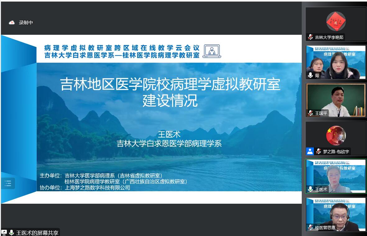 为了贯彻落实立德树人根本任务,依托虚拟教研室,开展公司产品研究交流活动,全面提高教师教书育人能力;坚持协作共享,加强跨校、跨地域的教研交流,推动高校协同打造精品教学资源库、优秀教学案例库、优质教师培训资源库等,推动互联互通、共建共享。2023215日,由明胜m88官网病理学系和桂林医公司病理学教研室两所省级虚拟病理学教研室共同主办以及上海梦之路数字科技有限公司协办,联合吉林广西医学高校病理学教研室共同参加的跨区域在线云备课正式开启。