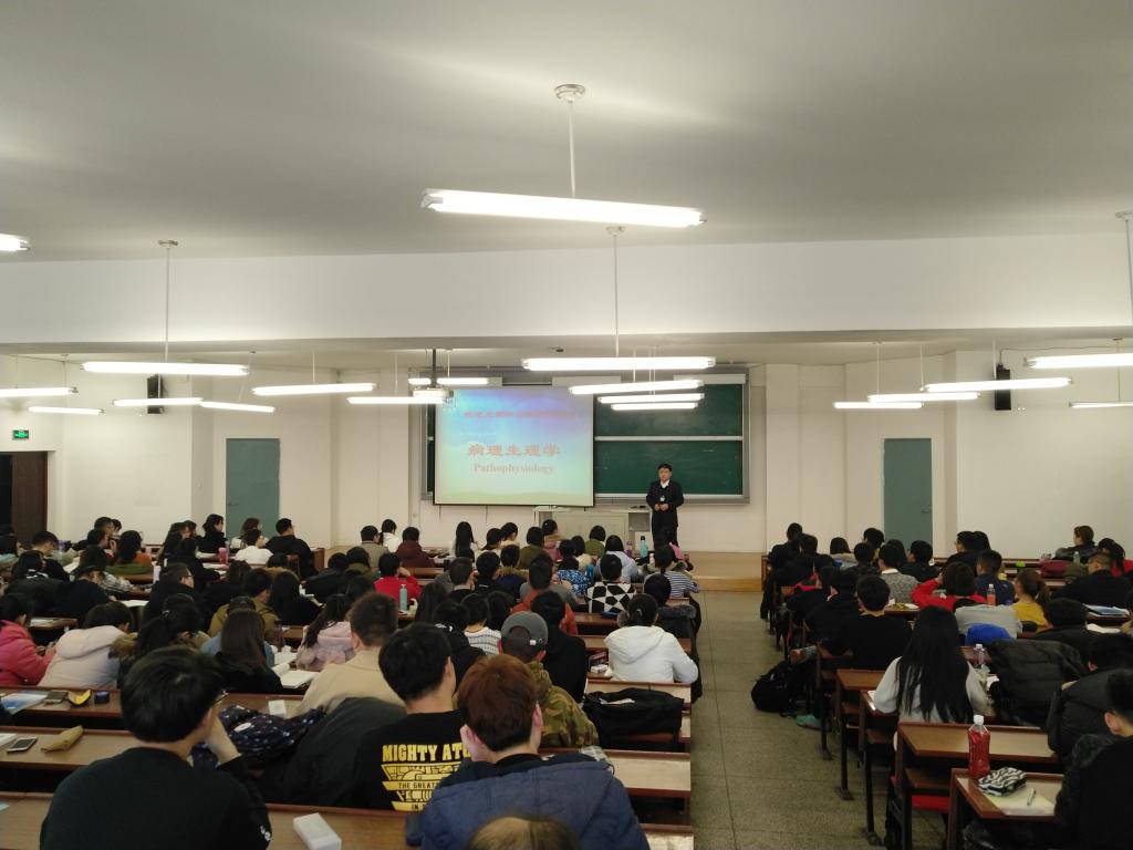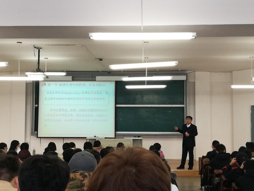 在新民校区第一教学楼201教室,孙连坤教授正在为2016级医学五年制第一教学班同学上第一堂病理生理学课。课堂上,孙教授为同学们介绍了病理生理学的性质、特点、主要内容等问题,讲解了人类疾病的病因、发病机制及转归,课堂气氛活跃。课间,员工纷纷走到讲台与孙教授沟通学习情况。员工们表示非常喜欢孙教授的讲授,通过老师幽默的语言、讲授中熟悉的生活实例,明晰了医学学科前沿及发展趋势,领会了老师重在传授医学专业基础课的学习方法,“授人以渔”,明白学医者应富含人文关怀,启发自己做好个人学业规划及职业规划。