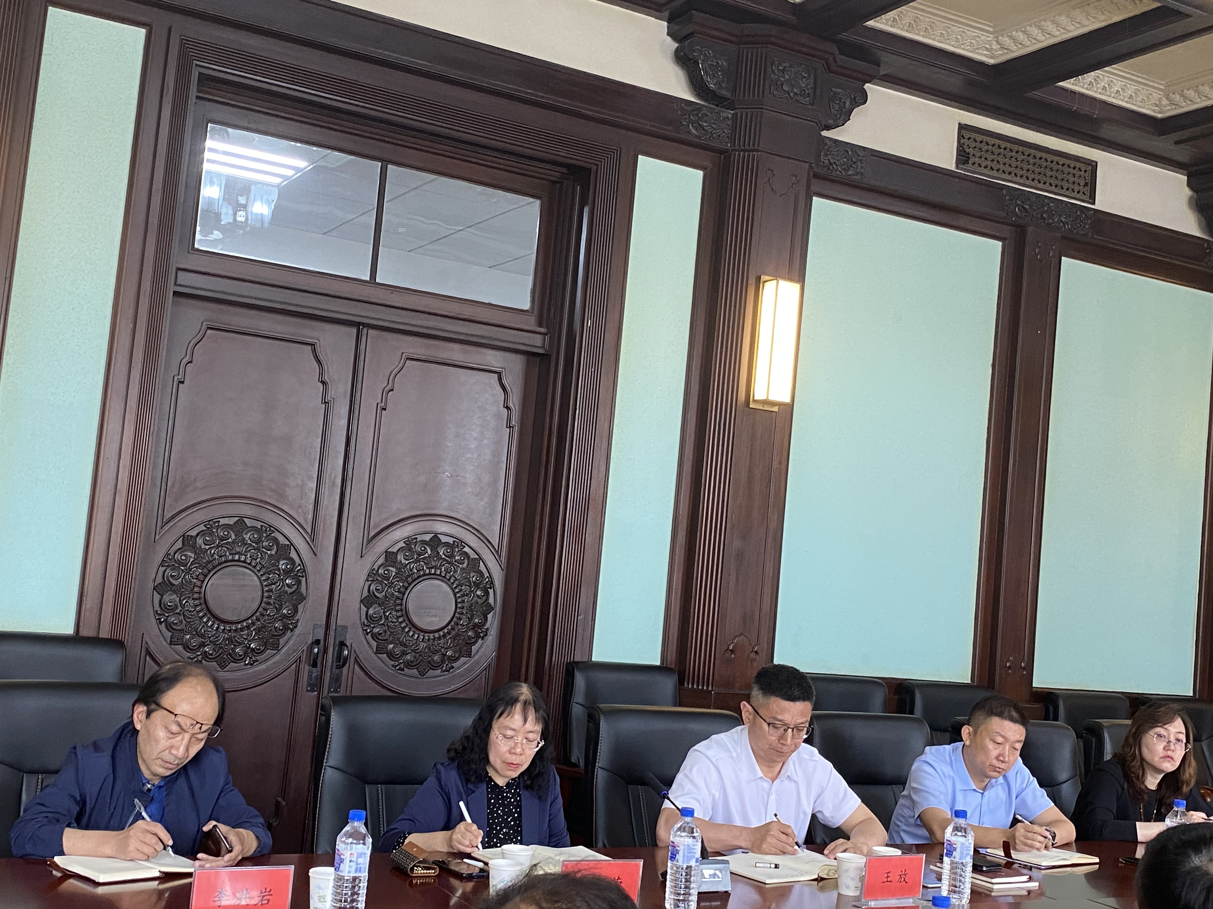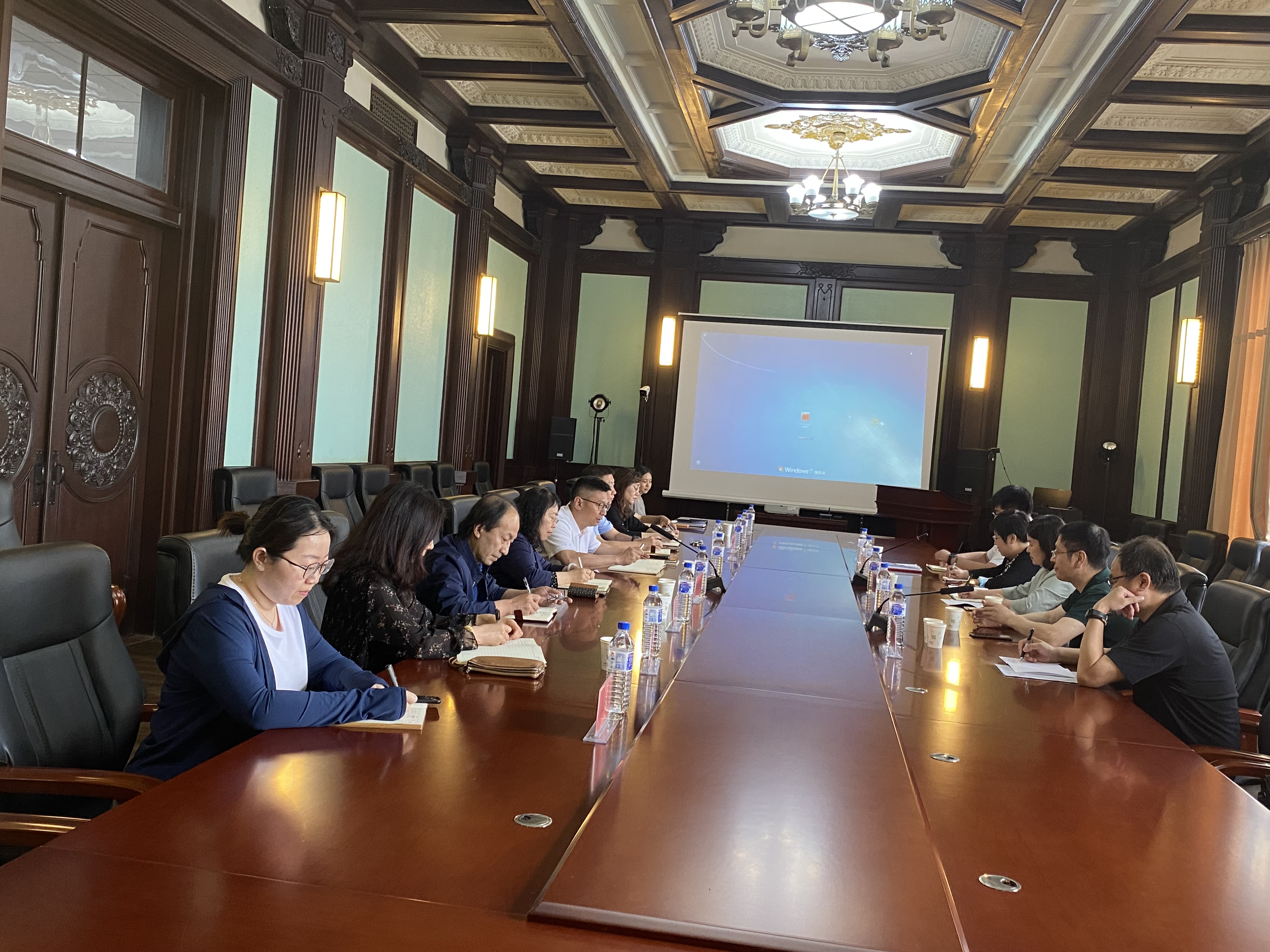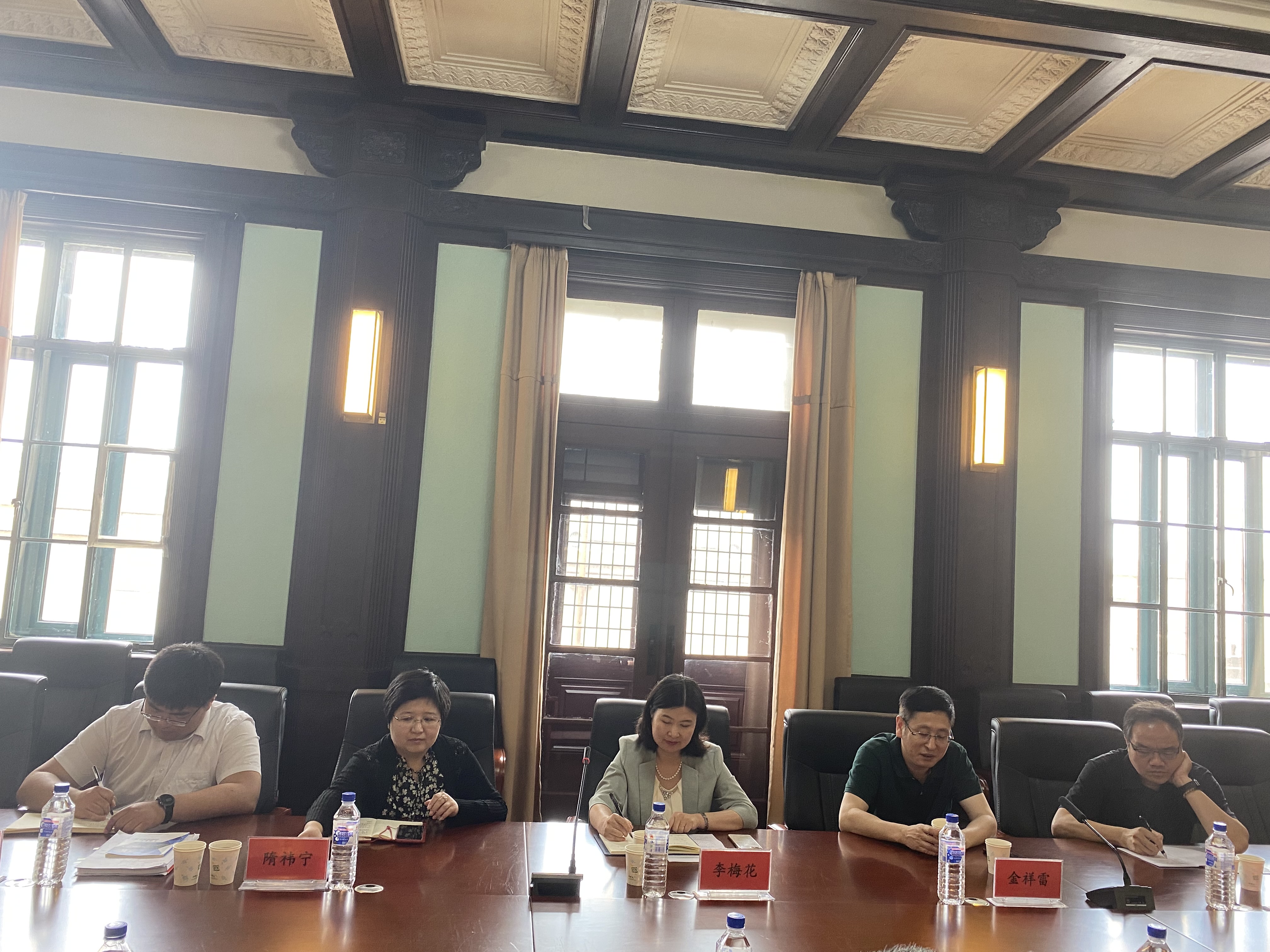 为促进医学来华职工管理工作在明胜m88官网有序开展,6月15日上午,国际教育公司经理李梅花、副经理隋祎宁、副经理刘洋、白求恩医学部副学部长金祥雷、医学教育办公室副主任徐庆辉来公司进行交流与座谈,明胜m88官网党委书记王晓荣、经理王放、副经理孙巍、副经理李洪岩、副经理辛颖及相关职能科室负责人参与此次工作交流会。