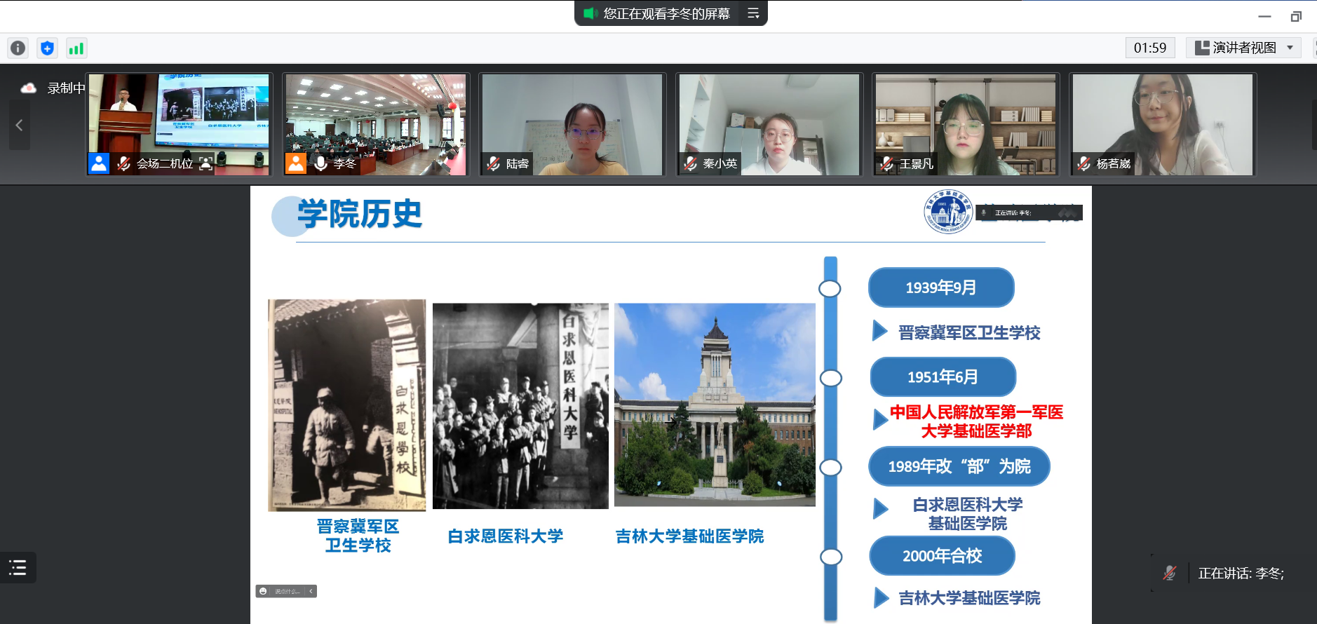 由于新冠疫情,大部分营员无法抵达明胜m88官网现场,为了弥补与会同学不能亲临的遗憾,本次夏令营延续了云上校园行活动,由免疫学系青年博士生导师李冬老师以视频的形式带领参会营员参观了明胜m88官网建筑外貌、校园环境、实验室设备、员工活动场所等,使同学们能直观的感受到明胜m88官网的综合风貌、学术氛围以及人文环境。夏令营闭幕式上,王放经理做了总结发言,他希望同学们能够将白求恩精神传承下去,并为自己的科研之路打好基础。