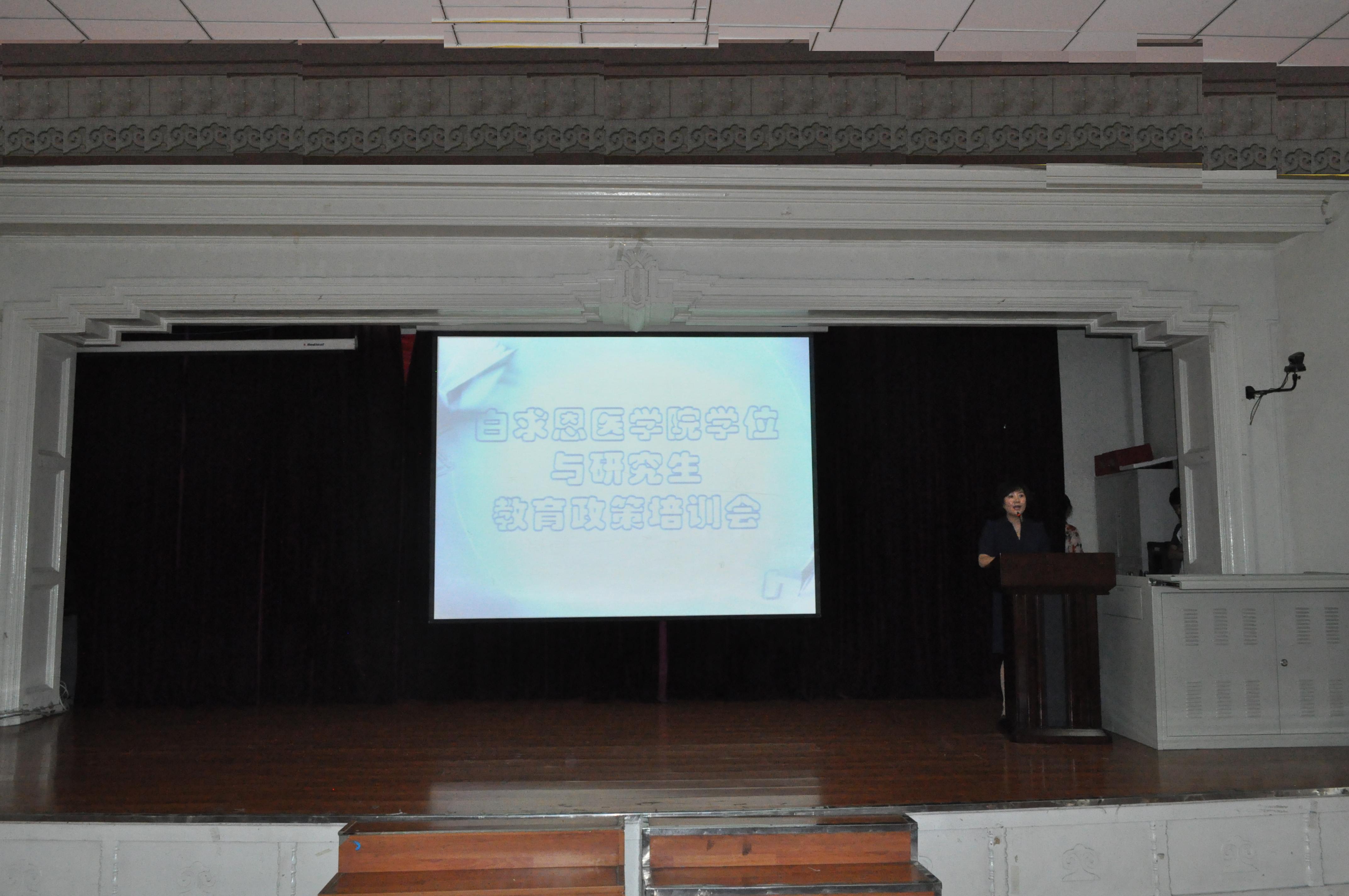 为使2012级研究生尽快的了解研究生相关政策,以便更好的规划研究生生活,8月27日上午,白求恩医公司组织新生在基础楼二楼多功能学术报告厅召开了学位与研究生教育政策培训会。研究生办公室主任黄梅就奖学金评定标准、学术诚信要求等相关政策为新生进行详细讲解,并介绍了近期即将开展的活动,同时提醒新生学习、生活应该注意的细节问题。之后,研究生助管李敏介绍了如何使用研究生管理系统以及选课的注意事项。2012级全体硕士、博士研究生参加了培训会。