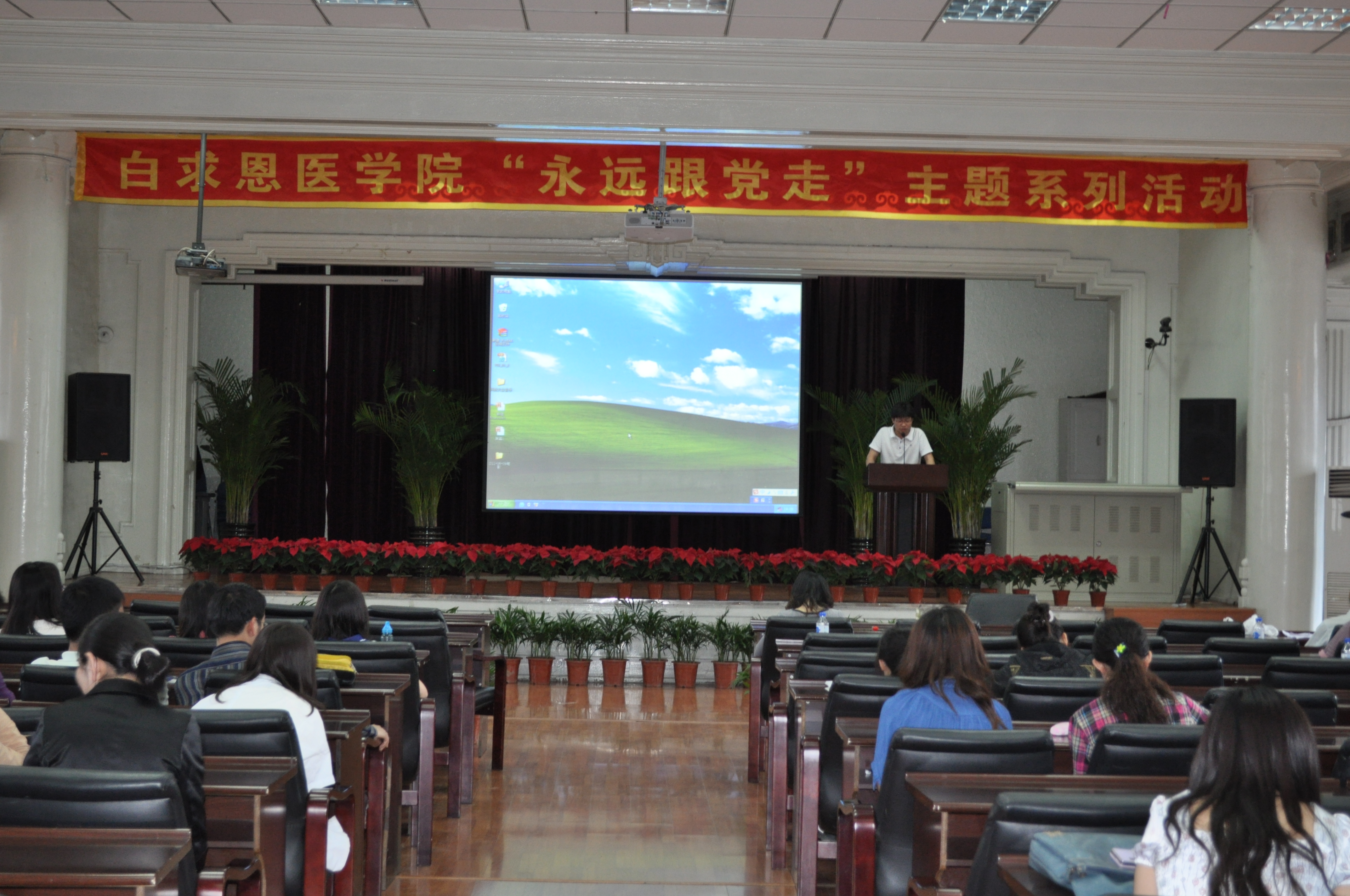为纪念建党90周年,进一步开展“永远跟党走”主题活动,6月9日下午,白求恩医公司在基础楼二楼多功能学术报告厅举办了研究生学术经验交流会暨红色电影《建国大业》影片欣赏党日活动。本次活动由公司研究生会、2010级硕士党支部和班委会积极组织策划,邀请了高年级博士生以及优秀党员代表做学术经验交流。全体研究生党员和研究生参加了活动,活动由公司研究生会学术部部长刘婷主持。