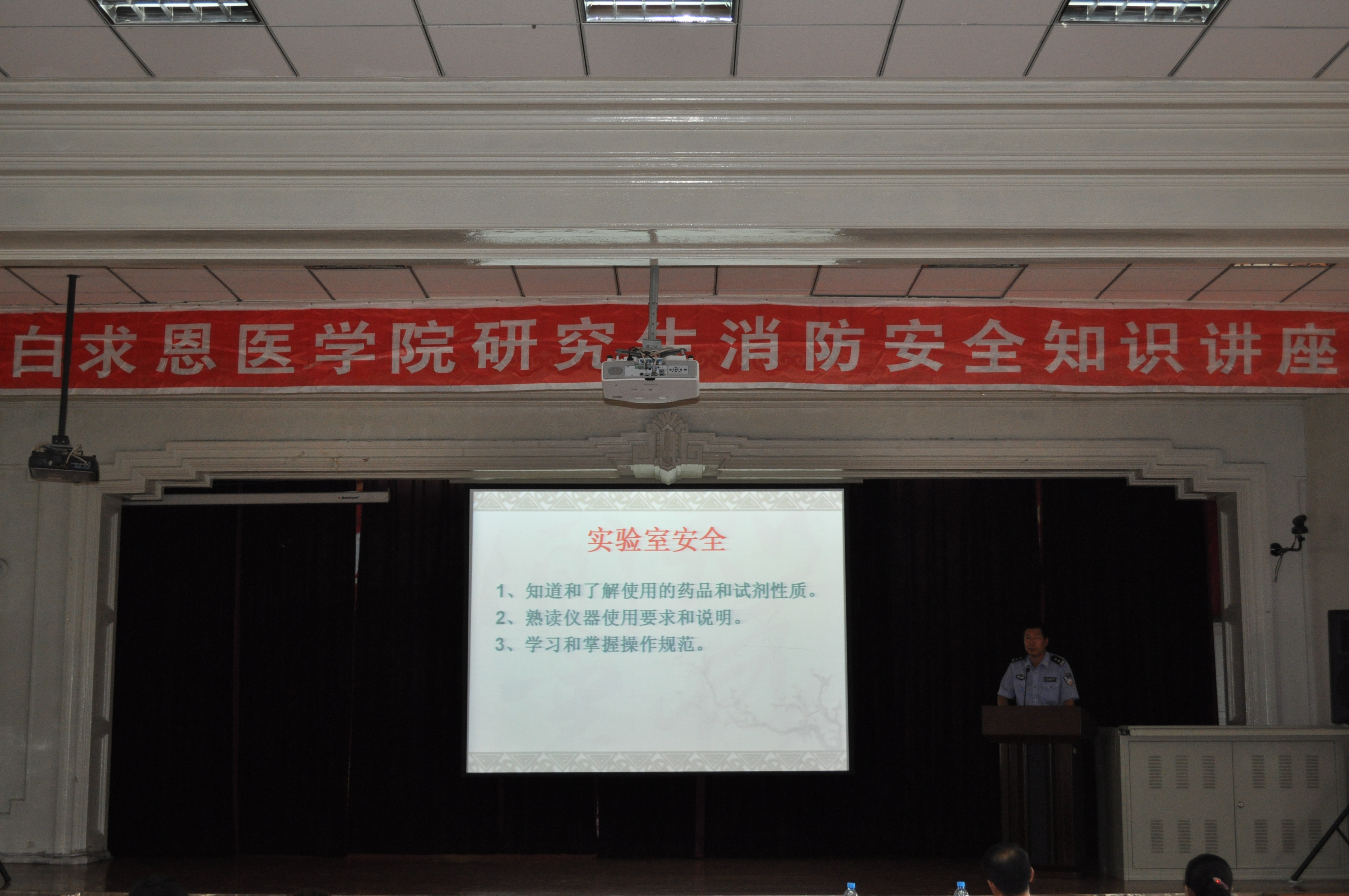 为增强研究生新生的消防安全意识,8月30日下午,白求恩医公司邀请新民校区保卫办科长安志成老师和郭云秀老师在基础楼二楼多功能学术报告厅为2011级研究生进行了消防安全知识讲座。讲座由公司研究生会主席李欧主持。