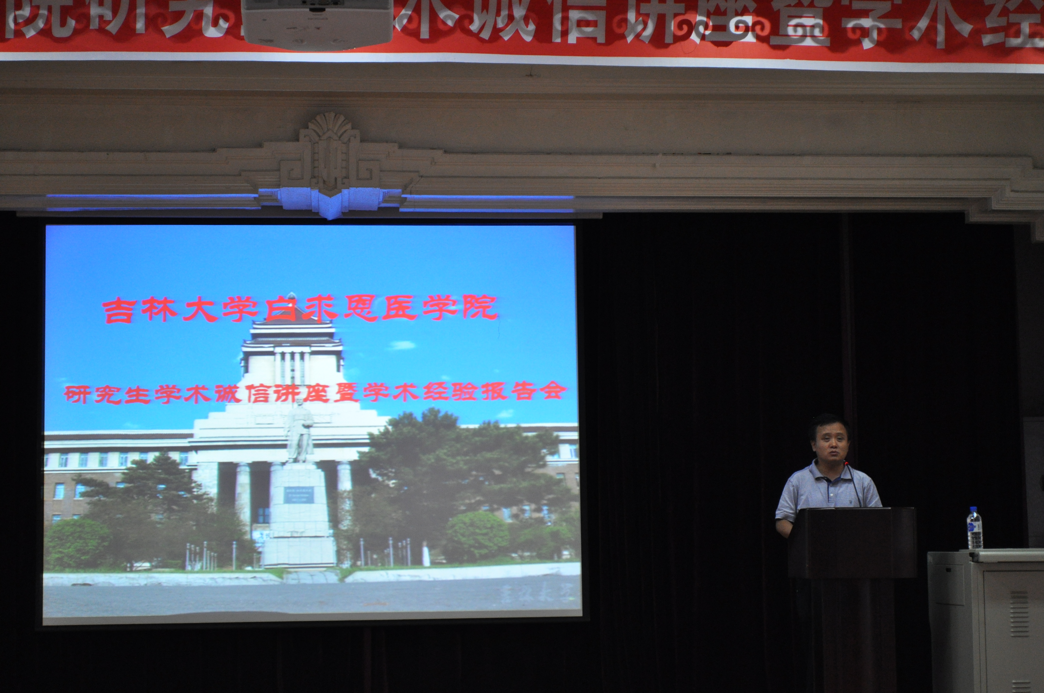 首先,原m88官方网站常务副董事长、白求恩医公司经理李玉林教授强调了学术诚信的重要意义,希望研究生从自身做起,多向导师和师兄师姐学习经验,坚定学术诚信,不能做违反职业道德的事情,以白求恩为榜样,精益求精做科研、做学问。随后,李桐忠老师通过详实的案例分析,阐述了学术不端行为产生的严重影响和不良后果,并重点强调了有关学术诚信的文件。希望广大研究生诚实做人,勤奋做事,成为国家的栋梁之才。之后,孙连坤教授从院领导和导师角度出发,语重心长的对广大研究生提出了严格的要求,并希望同学们认真钻研,认真积累,正确处理好理想与现实的关系,提高个人的综合素质,争取成为真正的研究型人才。最后,李一雷教授在严谨学术和严格训练,学会工作,规划人生三方面对广大研究生提出希望,并给予具体指导。
