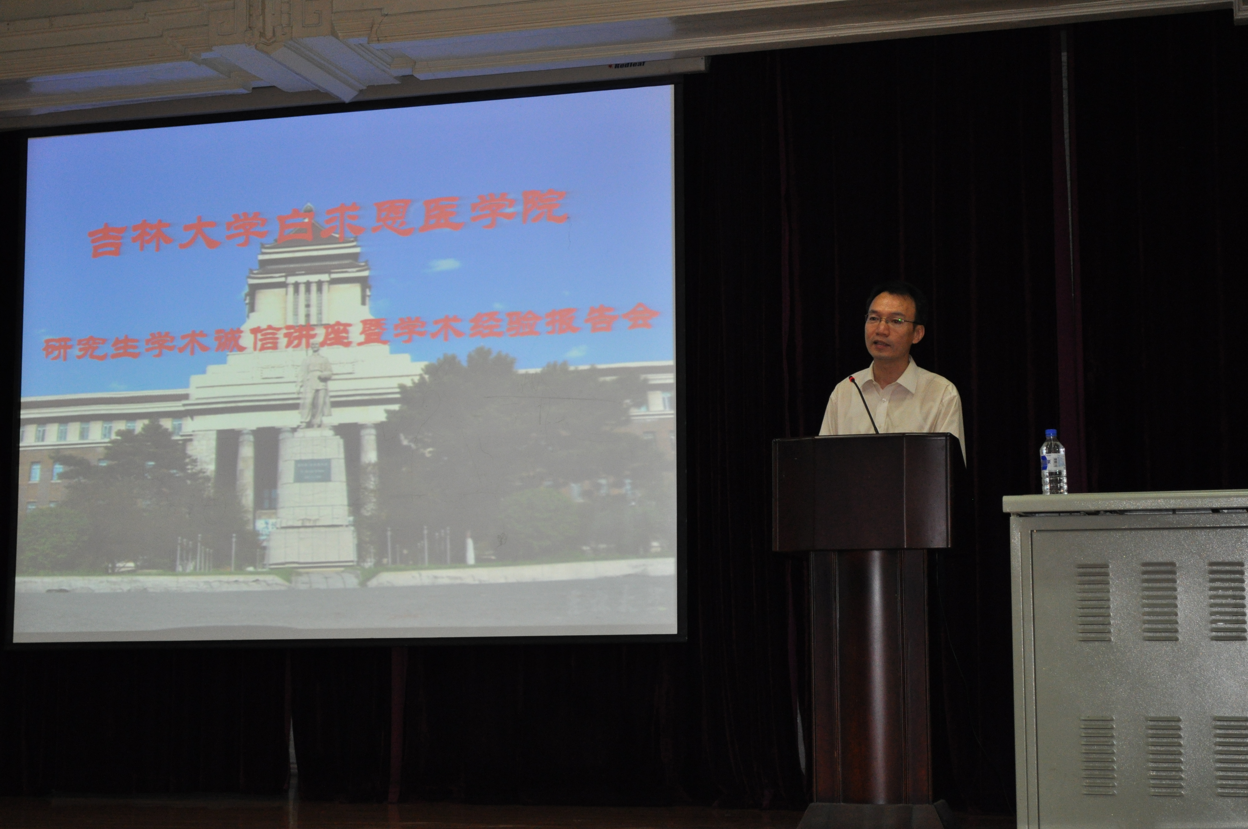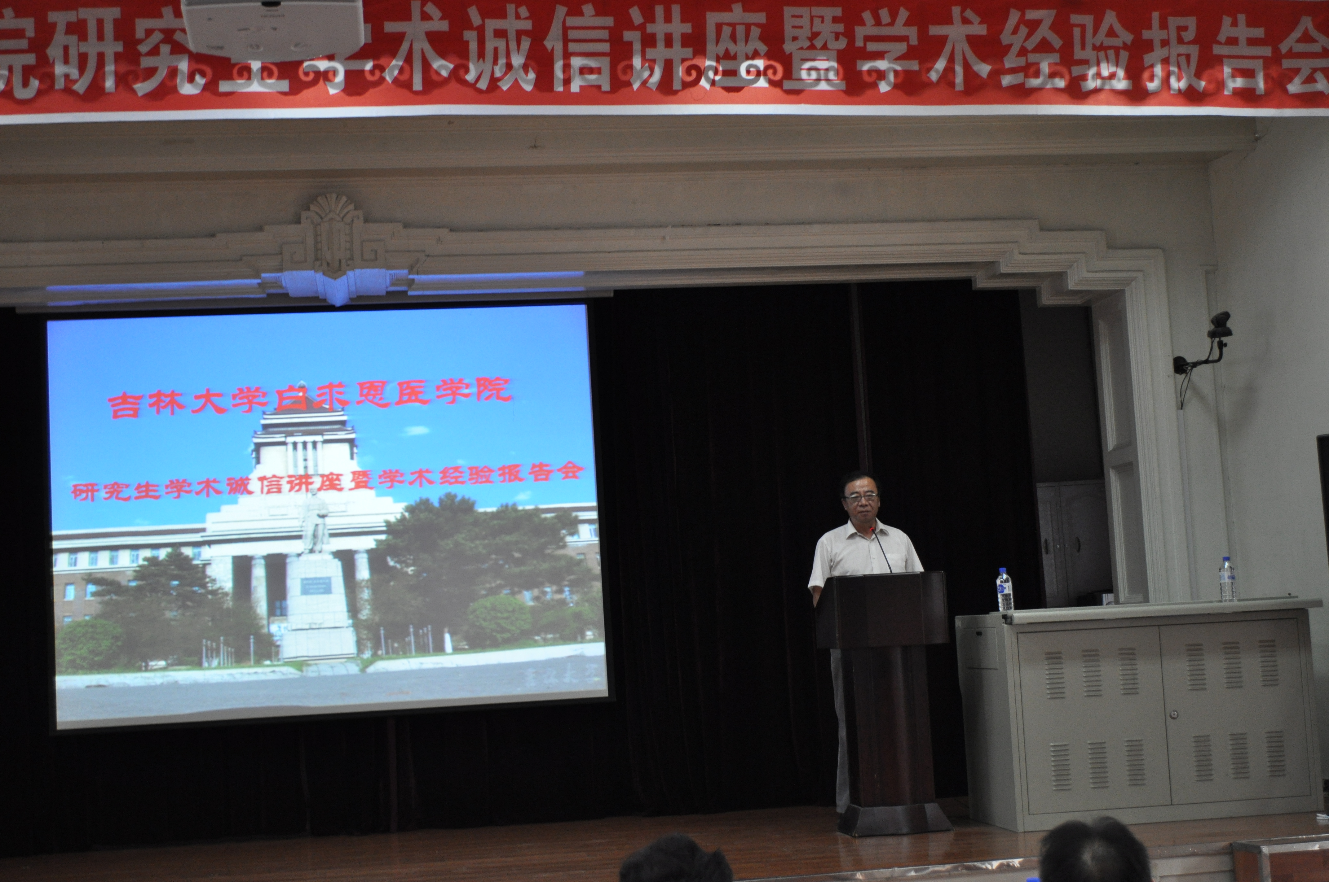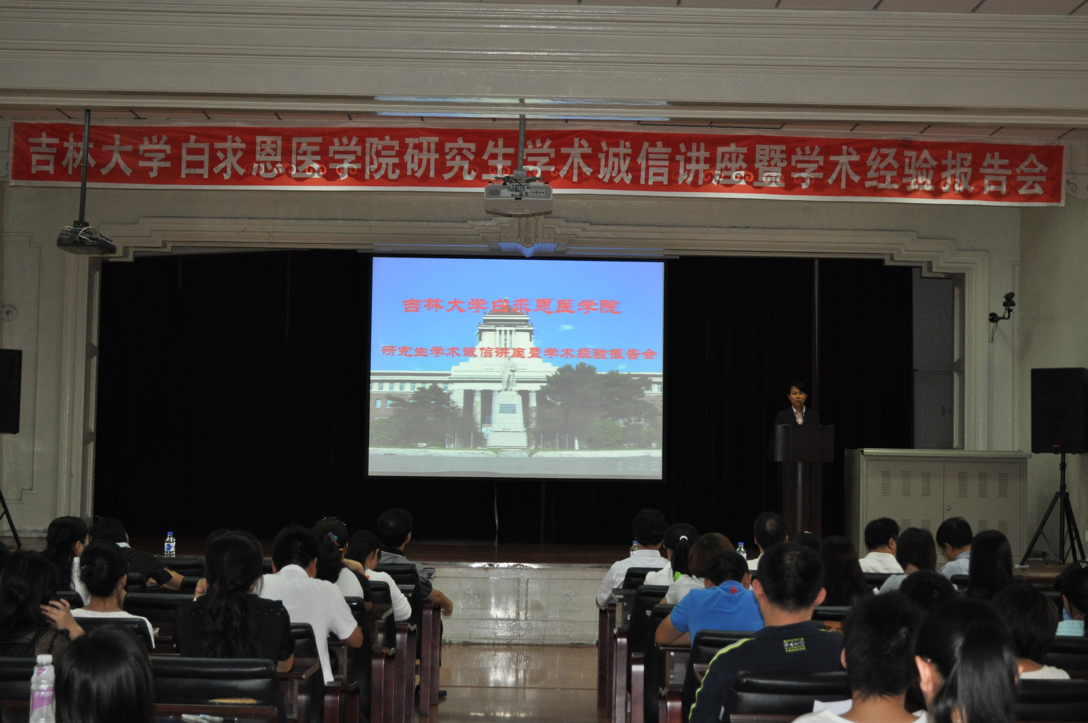 9月3日下午,白求恩医公司邀请研究生院学位办公室主任李桐忠老师在基础二楼多功能报告厅进行了研究生学术诚信讲座。原m88官方网站常务副董事长、白求恩医公司经理李玉林教授,白求恩医学部学位评定委员会主任、白求恩医公司常务副经理孙连坤教授,公司党委书记屈英和教授,主管研究生工作副经理李一雷教授等领导和2010级研究生一起参加了讲座。讲座由公司党委副书记费淑波主持。
