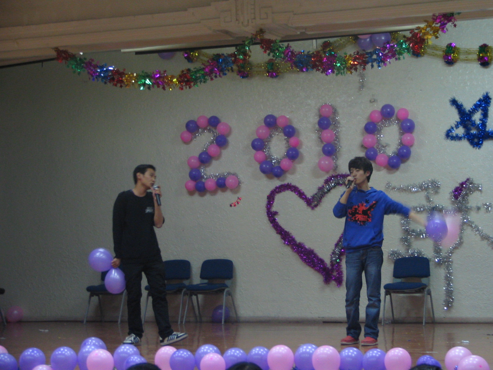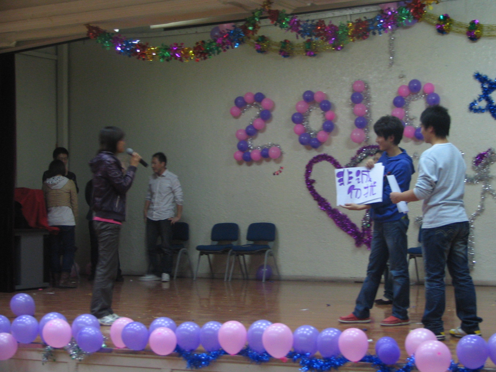 联谊会在公司党委副书记费淑波的国庆祝福中拉开帷幕,随后,激情四射的劲歌热舞迅速吸引了师生的眼球,同学们用心演绎的歌曲《听海》、《死了都要爱》、《单身情歌》等赢得掌声不断,创意美妙的研究生生活三句半精彩不断、笑声不断。节目中间穿插搞笑的游戏互动---齐心协力运气球、想方设法吃薯片、虎年说虎词等游戏令台上台下的老师同学捧腹不止,会场气氛高潮迭起。